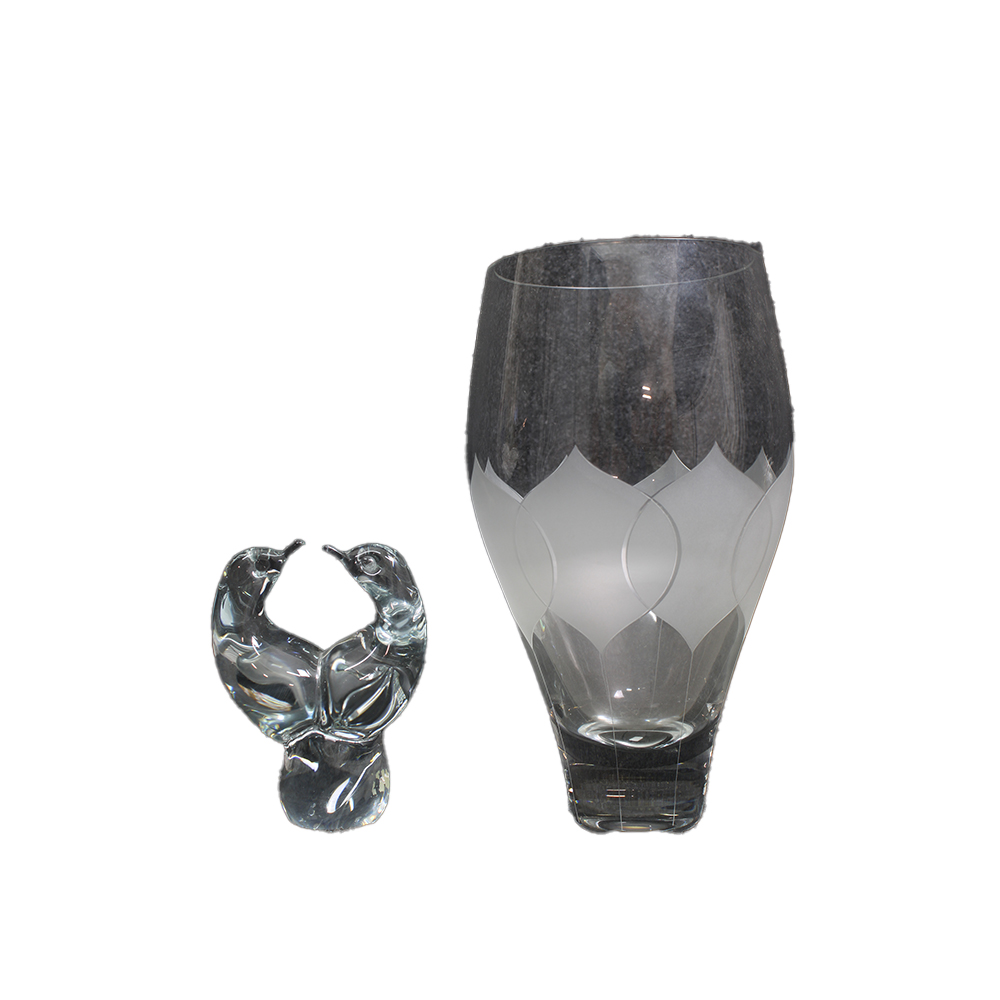 LOTTO DI 2 OGGETTI in cristallo di buona fattura periodo stimato anni 70 h cm 26 x Ø 13,5 - h cm 14 x 11 x 16