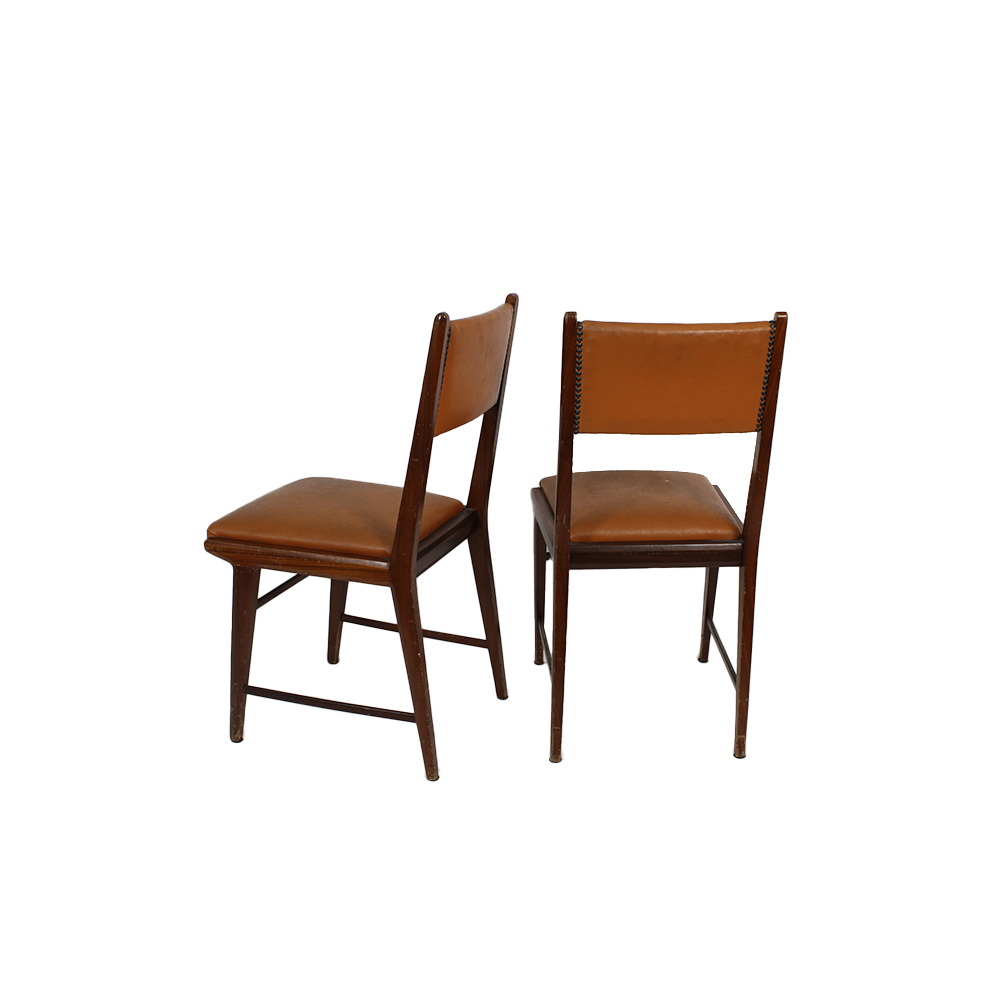 SET COMPOSTO DA 6 sedie in legno ed ecopelle produzione italiana anni 60, strappi h cm 86 x 43 x 45