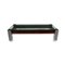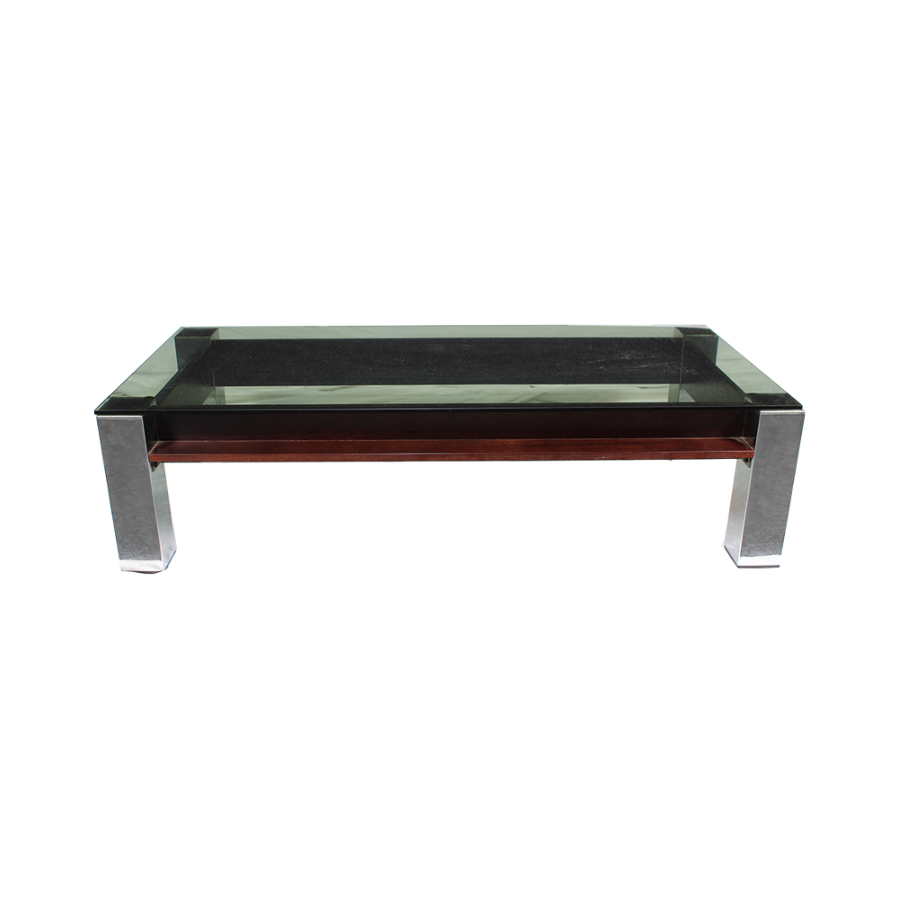 TAVOLINO BASSO in acciaio, legno e piano in vetro fumè produzione italiana periodo stimato anni 70 h cm 32 x 120 x 55