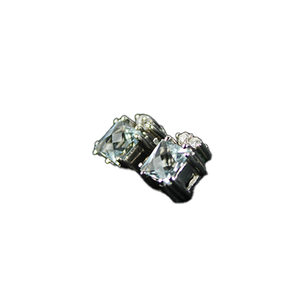 COPPIA ORECCHINI in oro bianco 750 con acquamarina e due diamantini, epoca contemporanea ITALIA 3,90 g cm 1,2