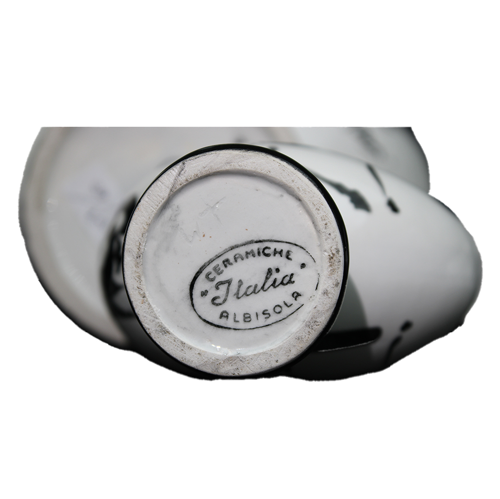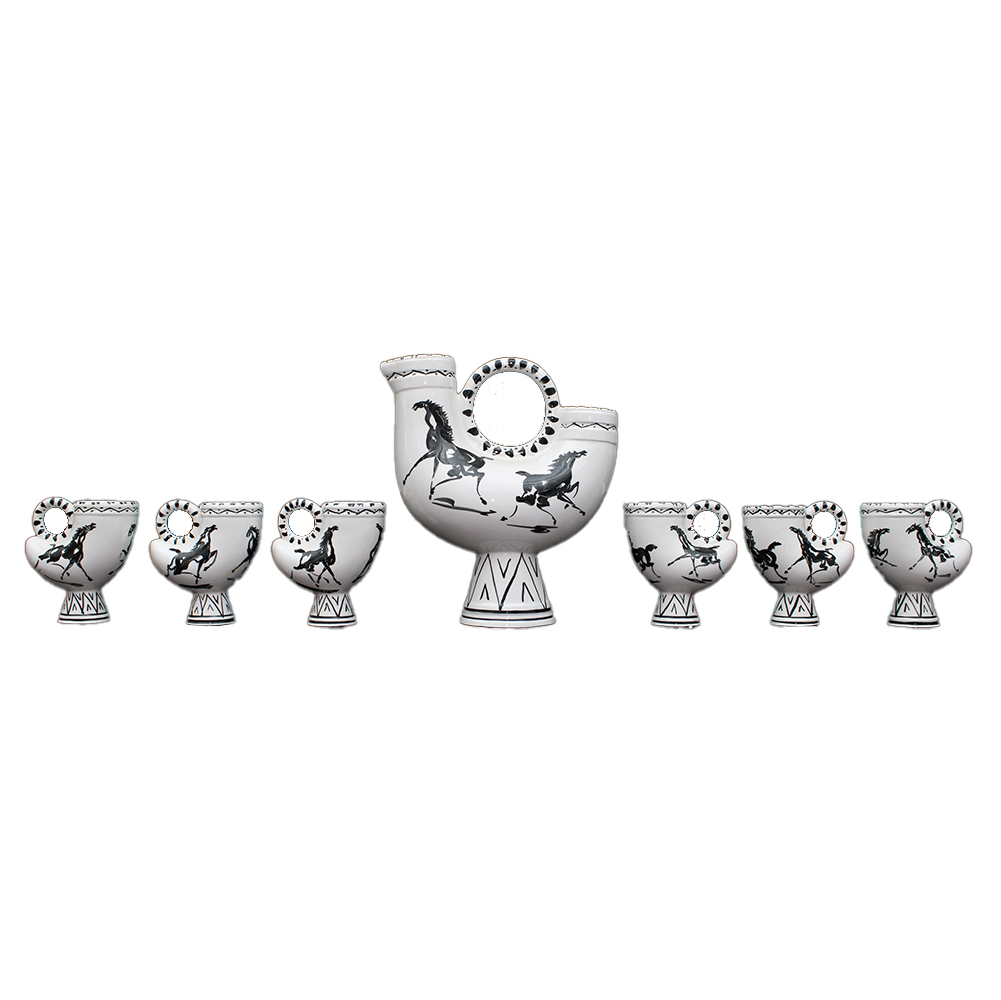 SERVIZIO D'ACQUA in ceramica decorata sui toni del bianco e nero raffiguranti figure cavalli produzione italiana Albisola periodo stimato anni 60 misure varie