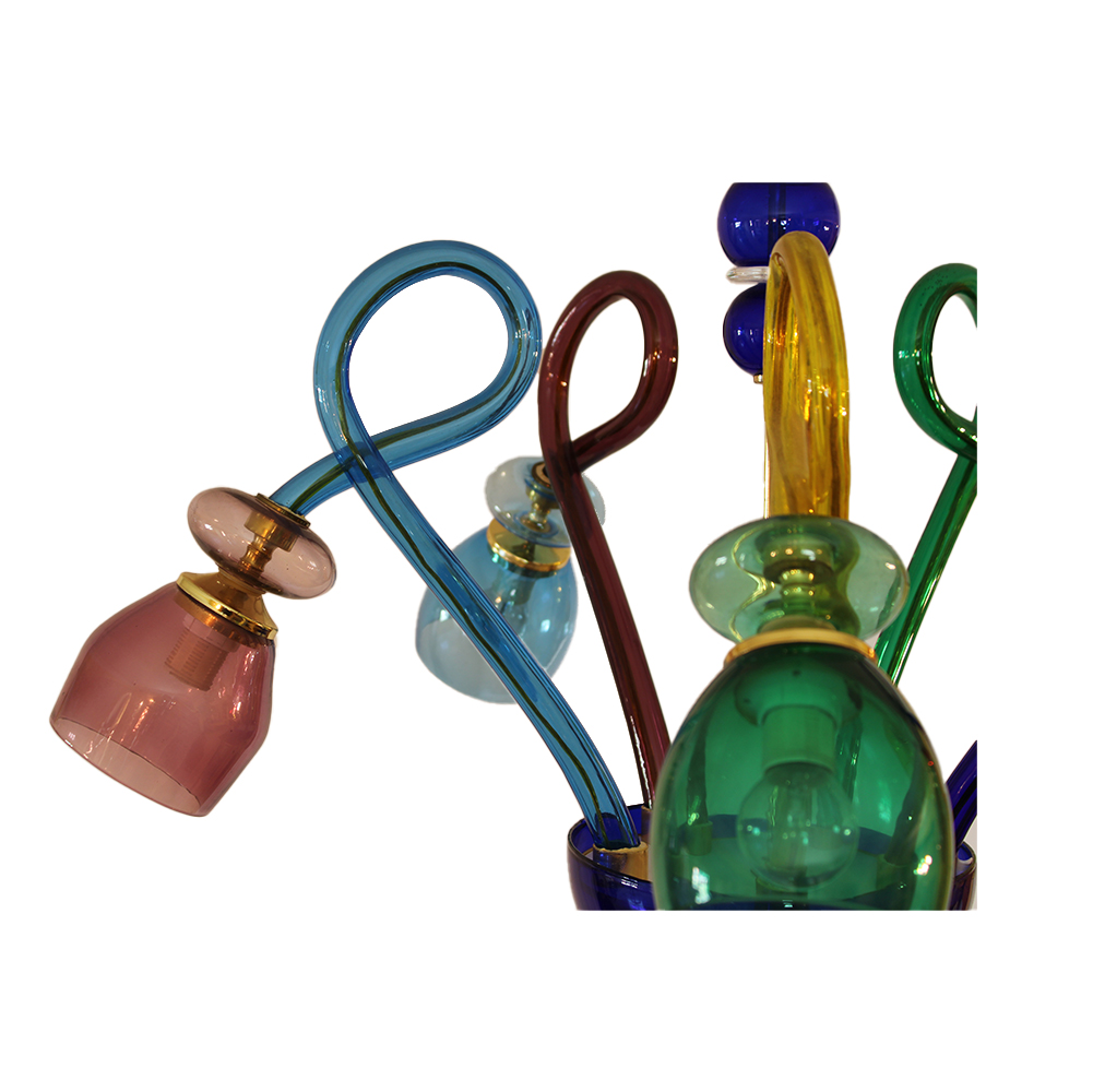 LAMPADARIO MULTI COLORE A 5 BRACCI in vetro Murano produzione Venini (attribuibile a Gio Ponti) produzione italiana periodo stimato anni 80/90 h cm 67 x Ø 80