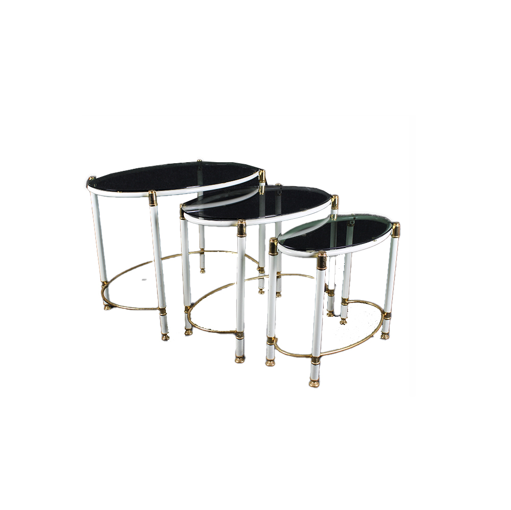 SET DI 3 TAVOLINI in metallo laccato e ottone con piani in vetro fume produzione italiana periodo stimato anni 70/80 h cm 50 x 70 x 47