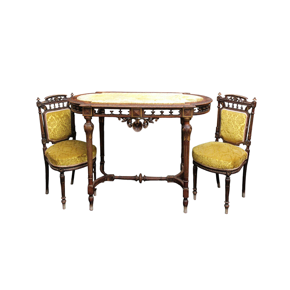 TAVOLINO DA SALOTTO E 4 SEDIE in noce Sicilia primi 900 h cm 80 x 202 x 101