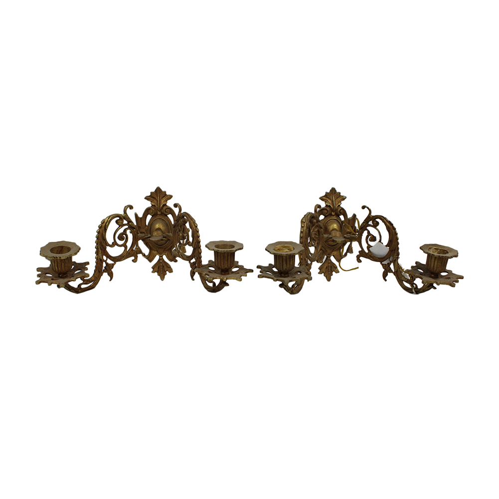 COPPIA DI APPLIQUES A 2 FIAMME in bronzo cesellato e dorato manifattura francese XIX secolo h cm 14,5 x 20 x 25