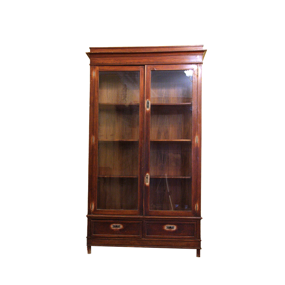 VETRINA in mogano a 2 ante e 2 cassetti nella parte inferiore Sicilia primi 900 h cm 217 x 122 x 43,5