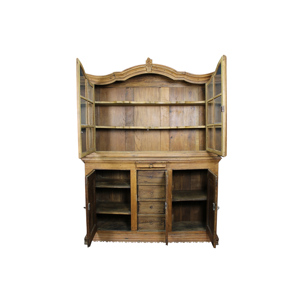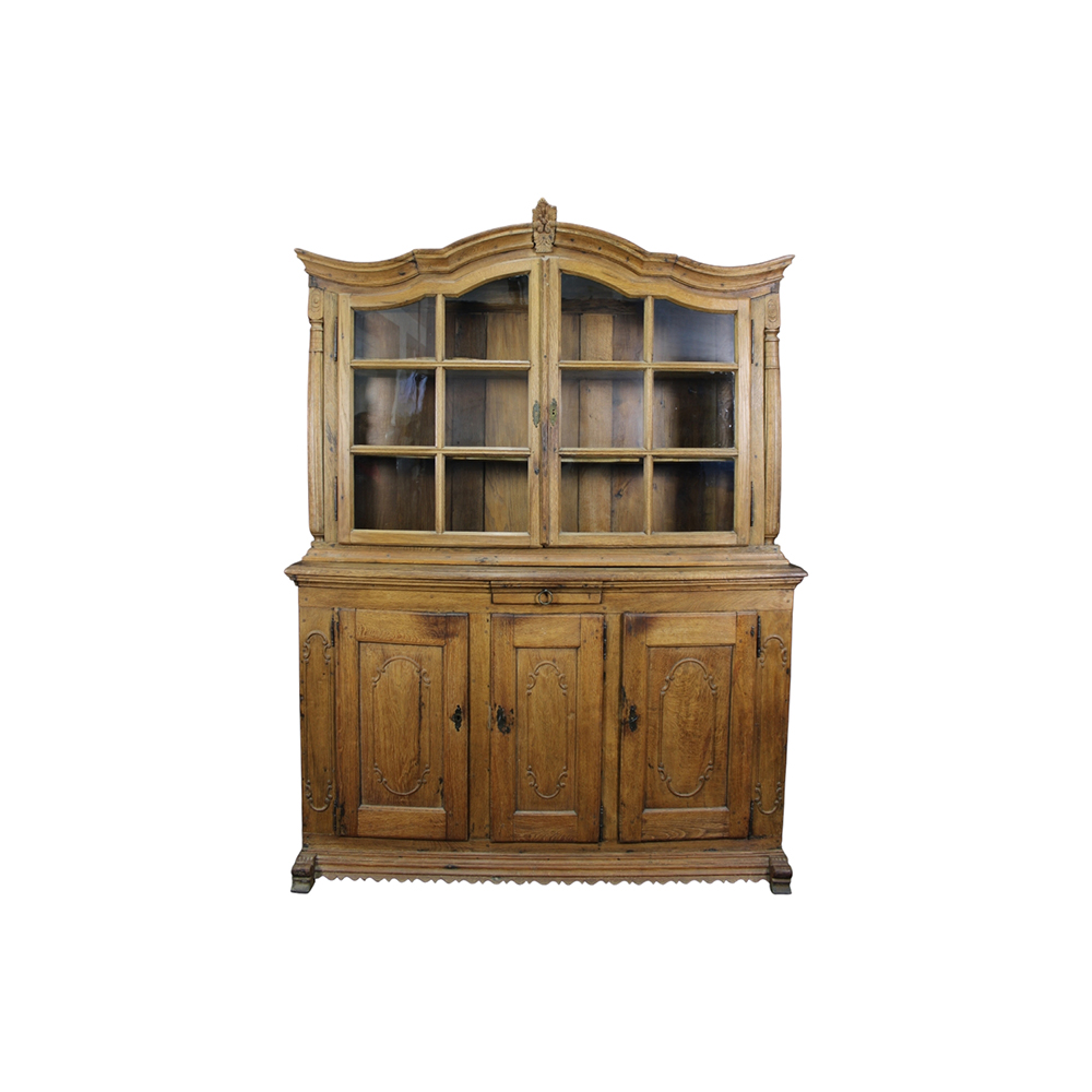 VETRINA DOPPIO CORPO in legno di castagno base a 3 sportelli e un cassetto nello sportello centrale 4 cassetti manifattura fiamminga XVIII secolo h cm 230 x 165 x 51
