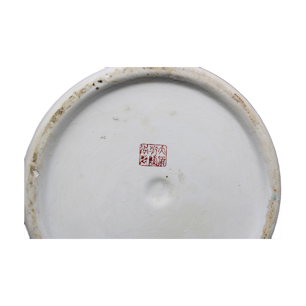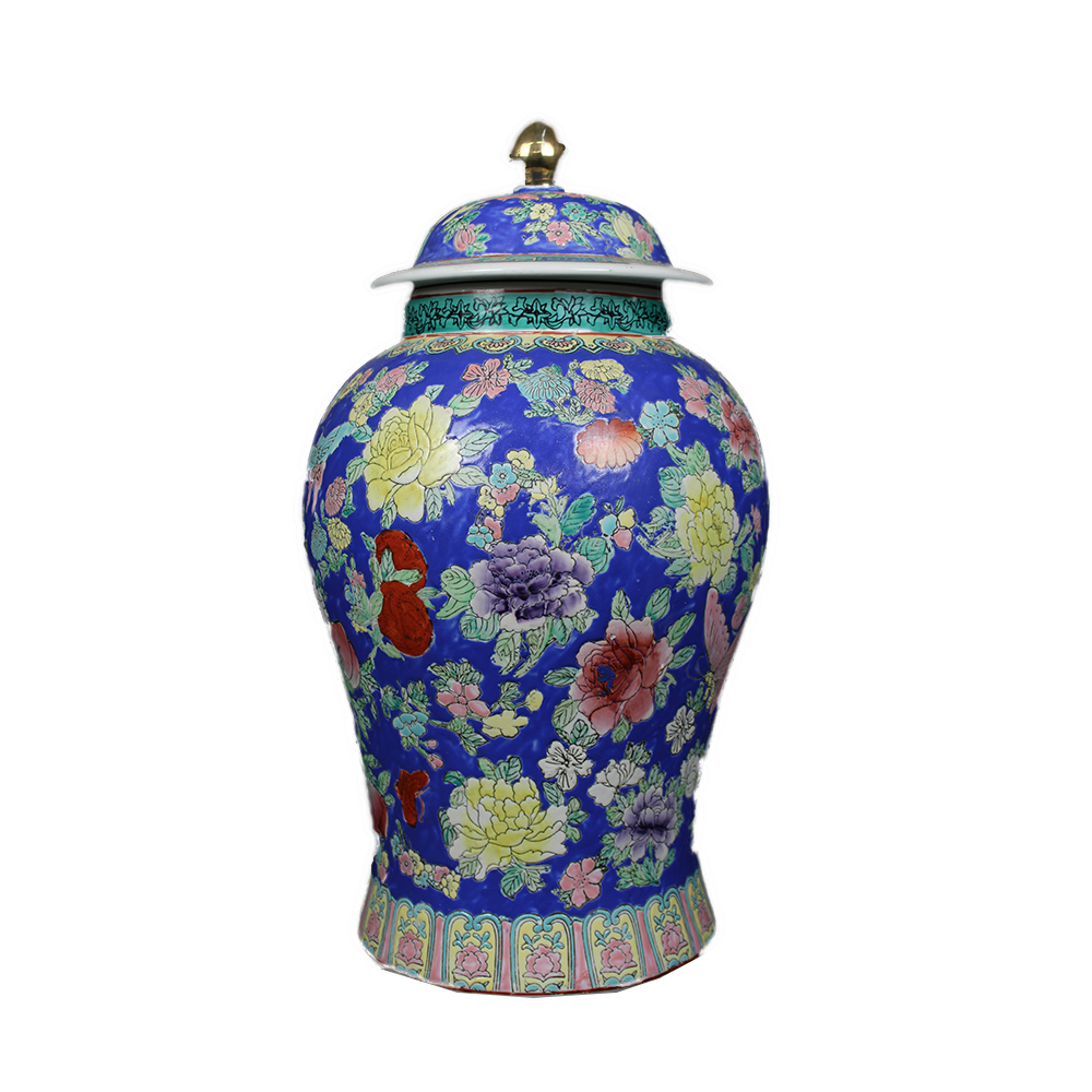 POTICHE in porcellana policroma, decorata a motivi floreali farfalle e pesche manifattura orientale primi 900 h cm 45 x 22