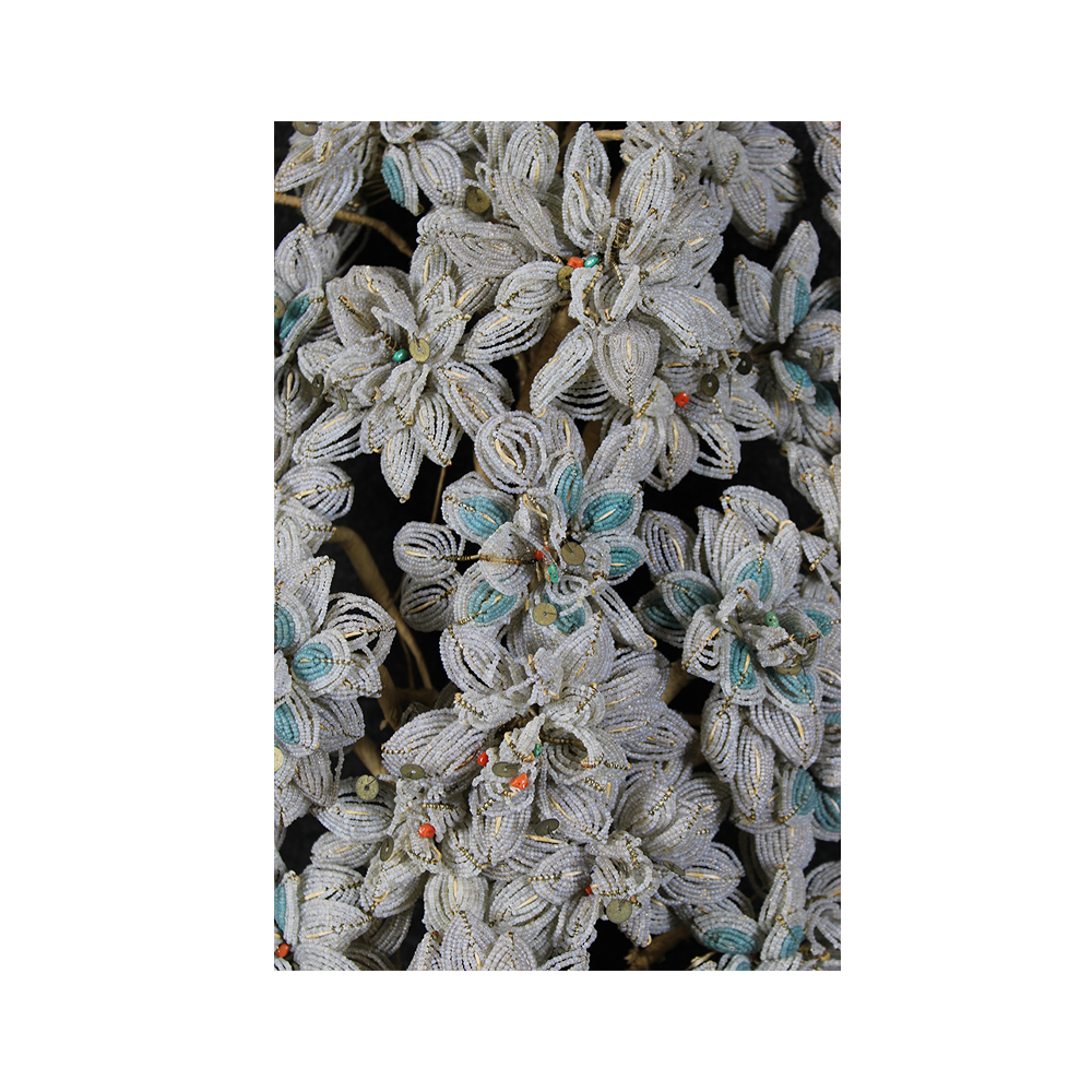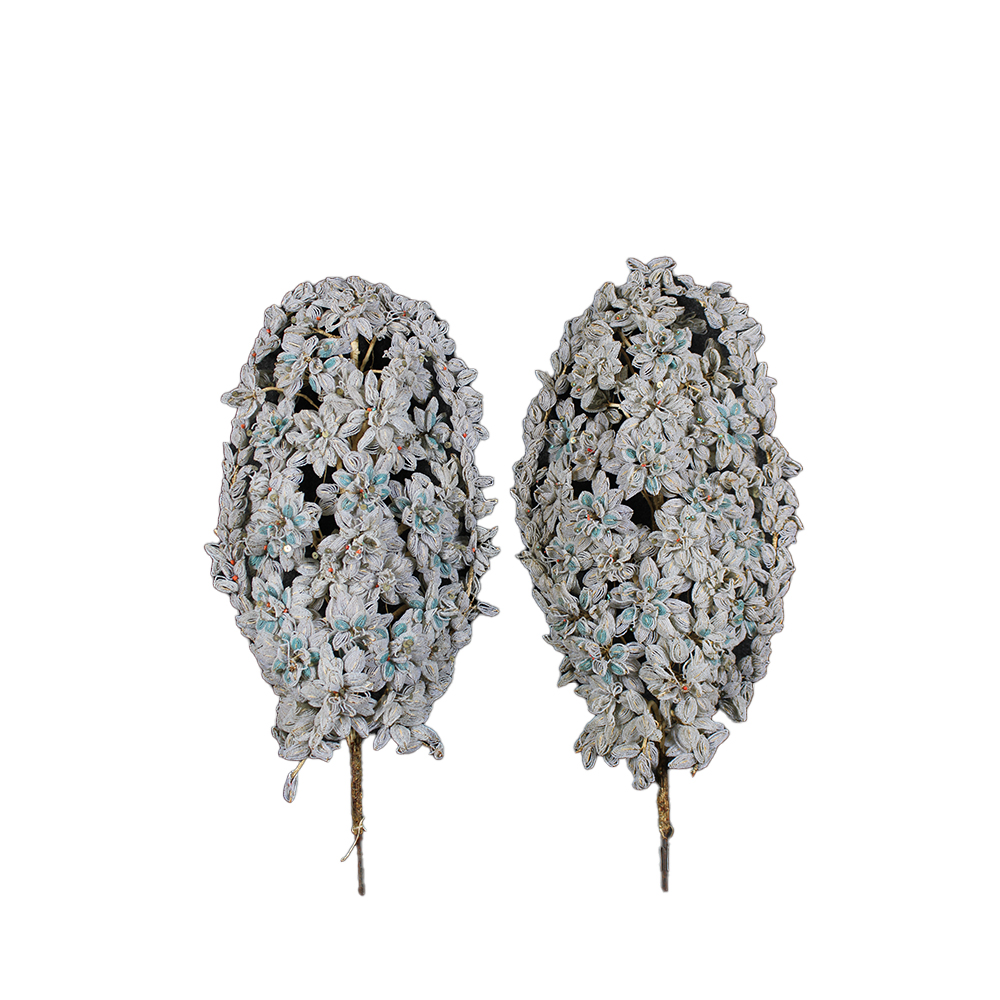 COPPIA DI PALME decorate a motivi floreali con micro perline di vetro e corallini maestranze siciliane XIX Secolo h cm 72 x 38