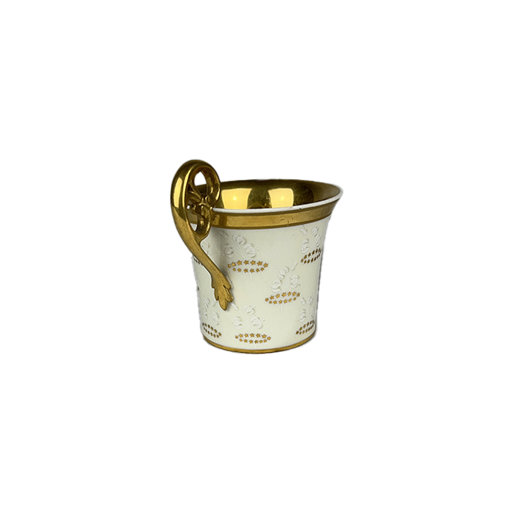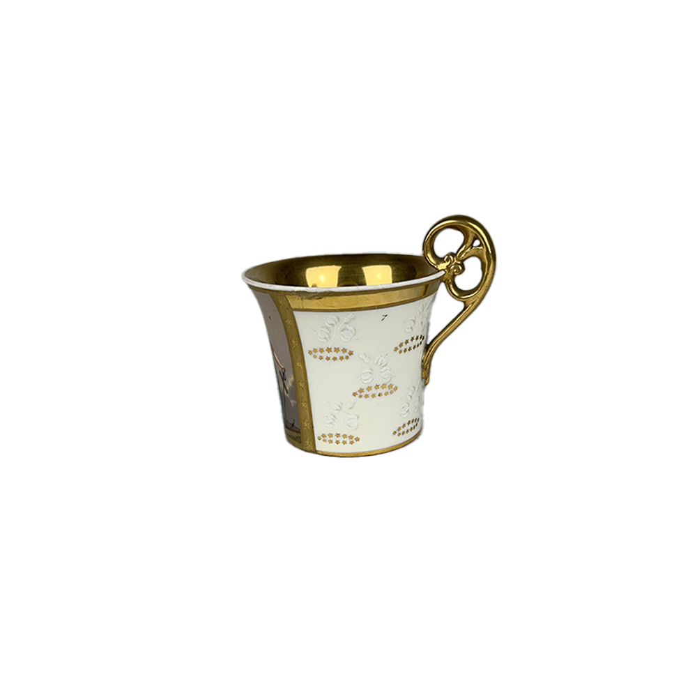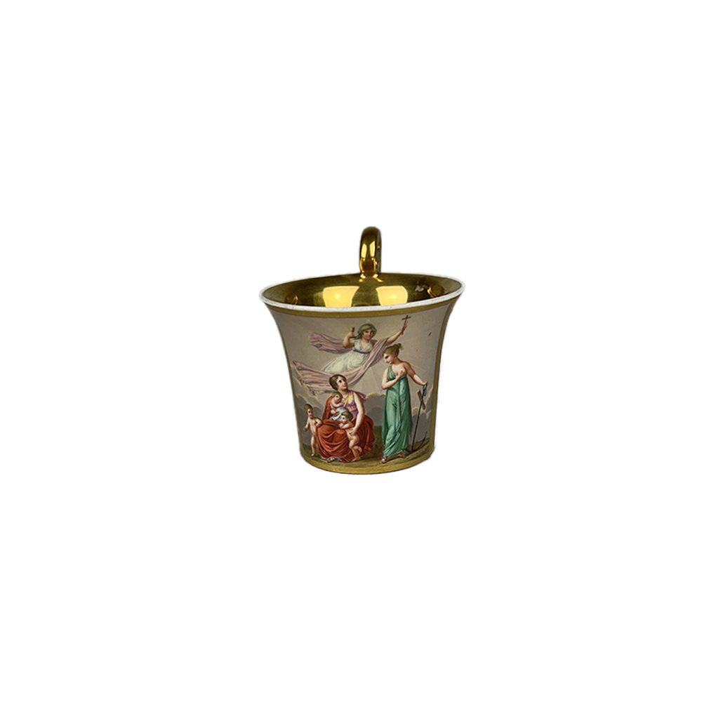 TAZZA IMPERO in porcellana finemente dipinta e dorata raffigurante scena biblica Parigi 1805 circa h cm 9 x 10,5