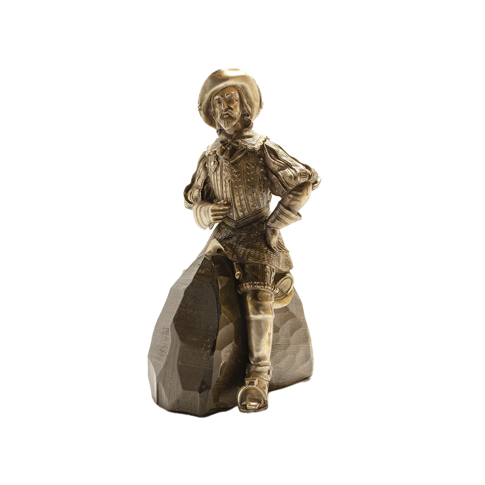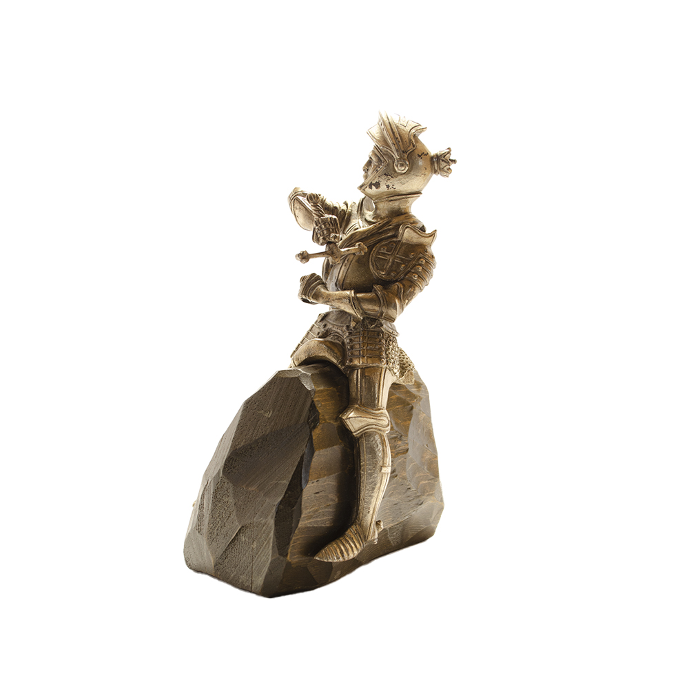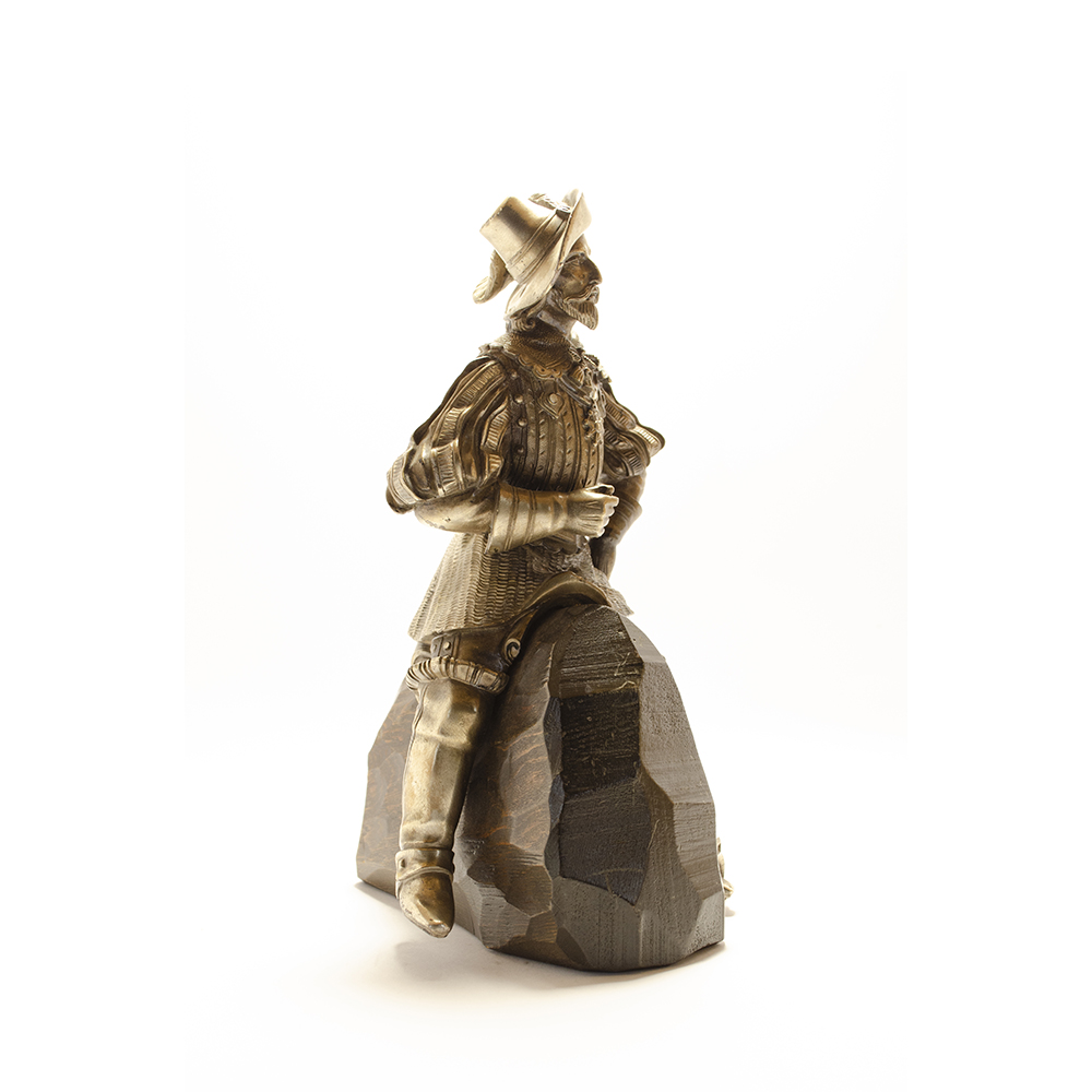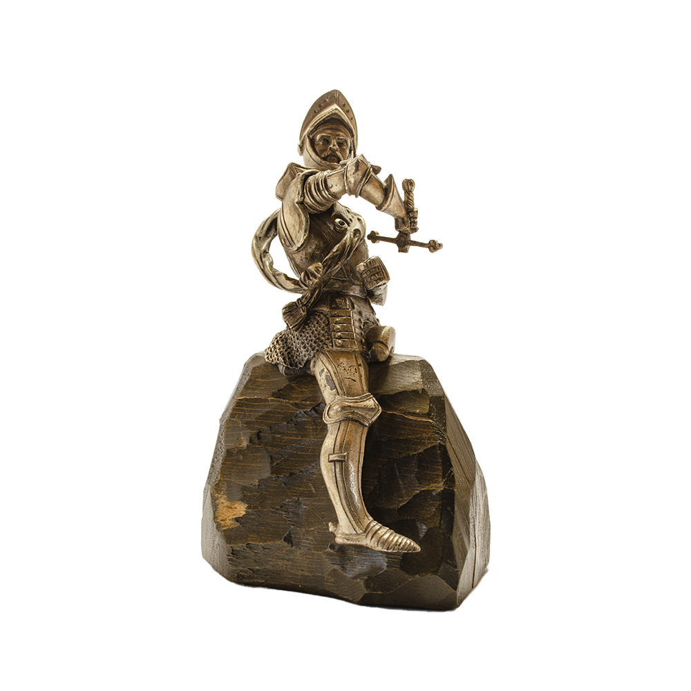 COPPIA DI SCULTURE in metallo finemente cesellato ed argentato con supporto in legno raffigurante cavalieri Francia XIX secolo h cm 21 / h cm 22