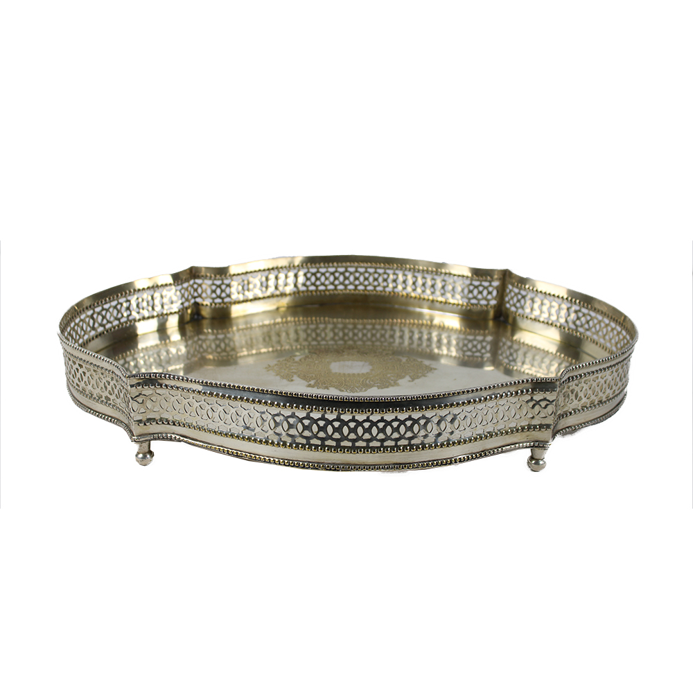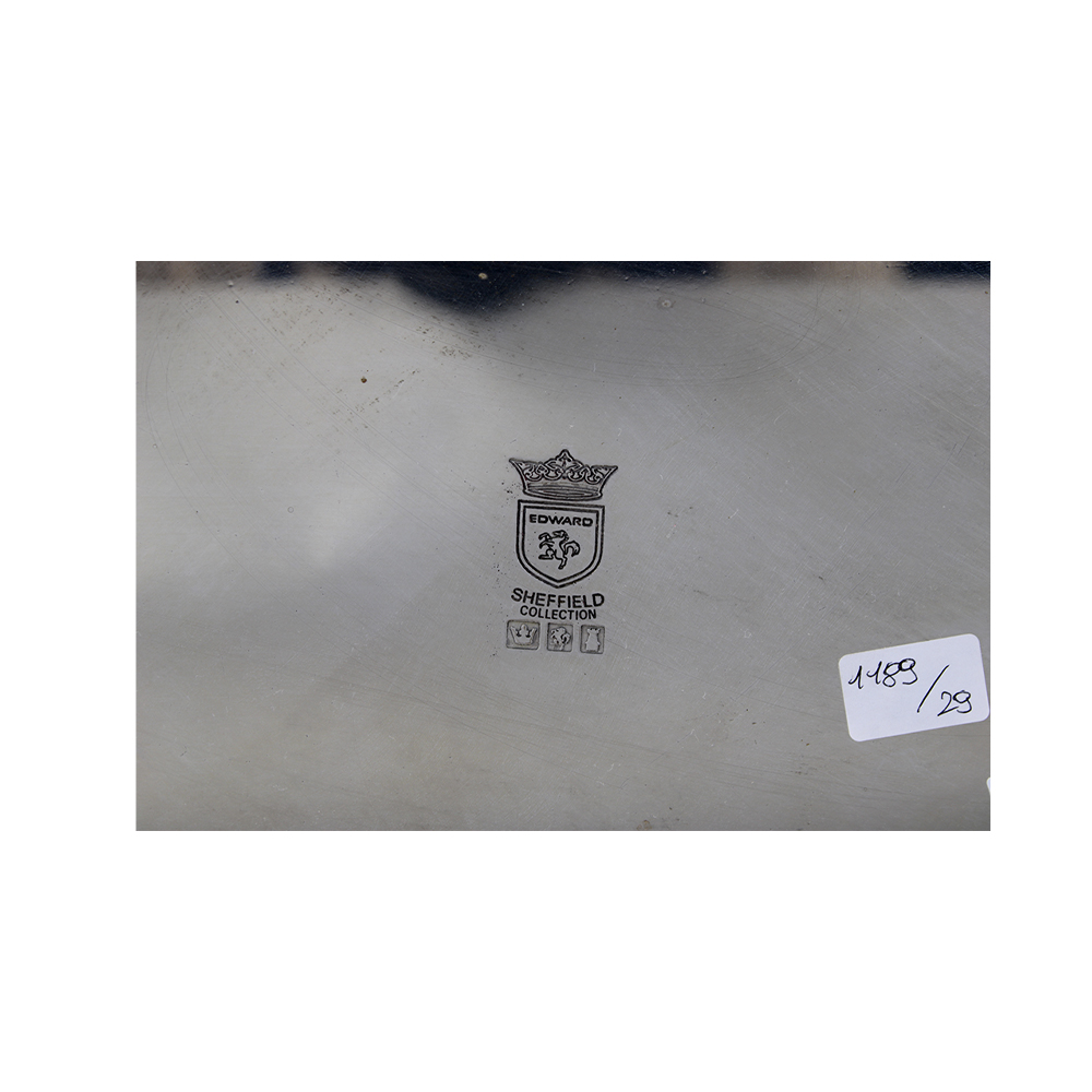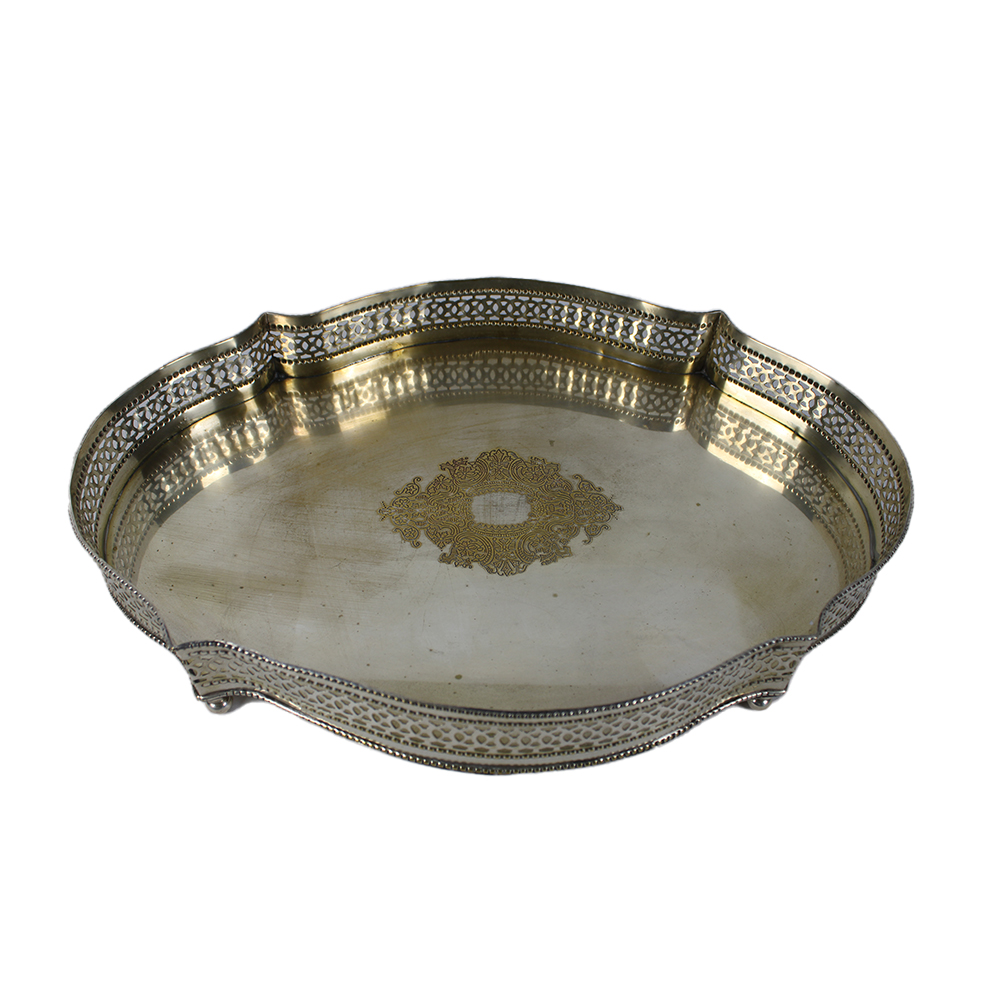 VASSOIO A RINGHIERA in sheffield traforato e finemente inciso, manifattura EDWARD sheffield collezione Inghilterra XX secolo h cm 8 x 46 x 32