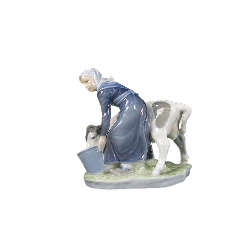 SCULTURA in porcellana dipinta raffigurante contadina con vitello manifattura Royal Copenaghen XX secolo