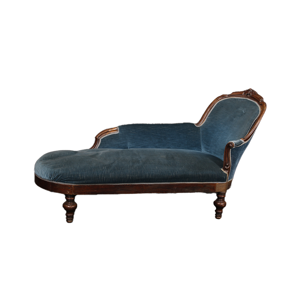 DORMEUSE in noce intagliata e tappezzata in velluto Sicilia XIX secolo h cm 100 x 180 x 68