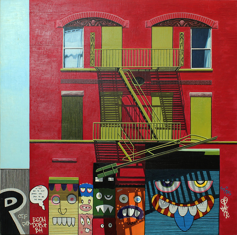 MARTA MEZYNSKA, "Monster", 2016, olio su tela, cm 80x80x3, peso 2,40 kg, opera con autentica su foto dell'artista. Al verso: firma e anno in alto a destra e sigla in basso a destra, dedica in alto a sinistra. Opera senza cornice.
