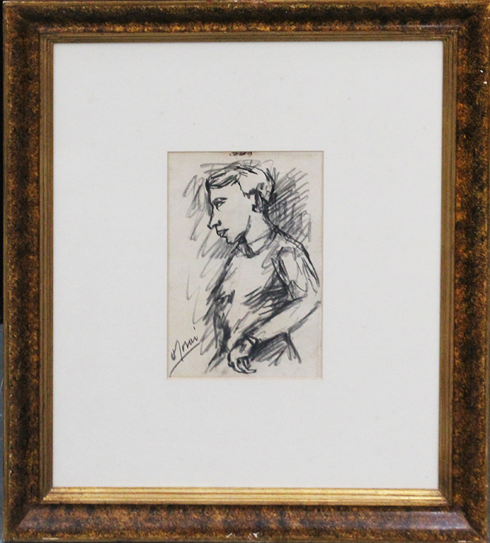 OTTONE ROSAI, "Figura di profilo", 1938, carboncino su carta, dim 29x19,3 cm. Autentica di Giovanni Faccenda. Al fronte: firma. Al verso: etichetta con nome artista, anno, dimensione, tecnica, titolo