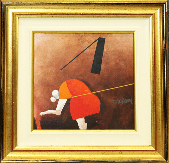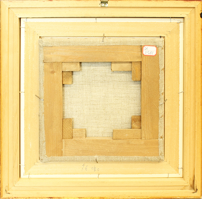 EMILIO TADINI, Senza titolo, anni '90, tecnica mista su carta applicata su tavola, dim. cm 25x25, con cornice cm 41x41x4, peso kg 1,30. Al fronte: firma a destra centrale. Opera con certificato di provenienza della galleria Daliano Ribani Arte. Opera con cornice