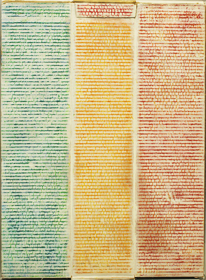 PAOLO MASI, Senza Titolo, 2016, tecnica mista su cartone spessorato, dim. cm 68x50, con teca in plexiglass cm 69x50,5x3,5, peso kg 3. Al verso: in basso a sinistra firma e anno. Opera con autentica su foto dell'artista e certificato di provenienza Daliano Ribani Arte.