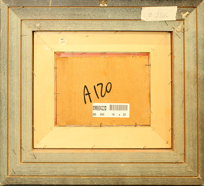 PIERO MAGGIONI, "Paesaggio astratto", anni '80, olio su tavola, cm 14,8x20,2, con cornice 40x44,5x4 cm, 1,5 kg. Al fronte: firma in basso a sinistra. Opera con certificato di provenienza della Daliano Ribani Arte. Opera con cornice in omaggio.