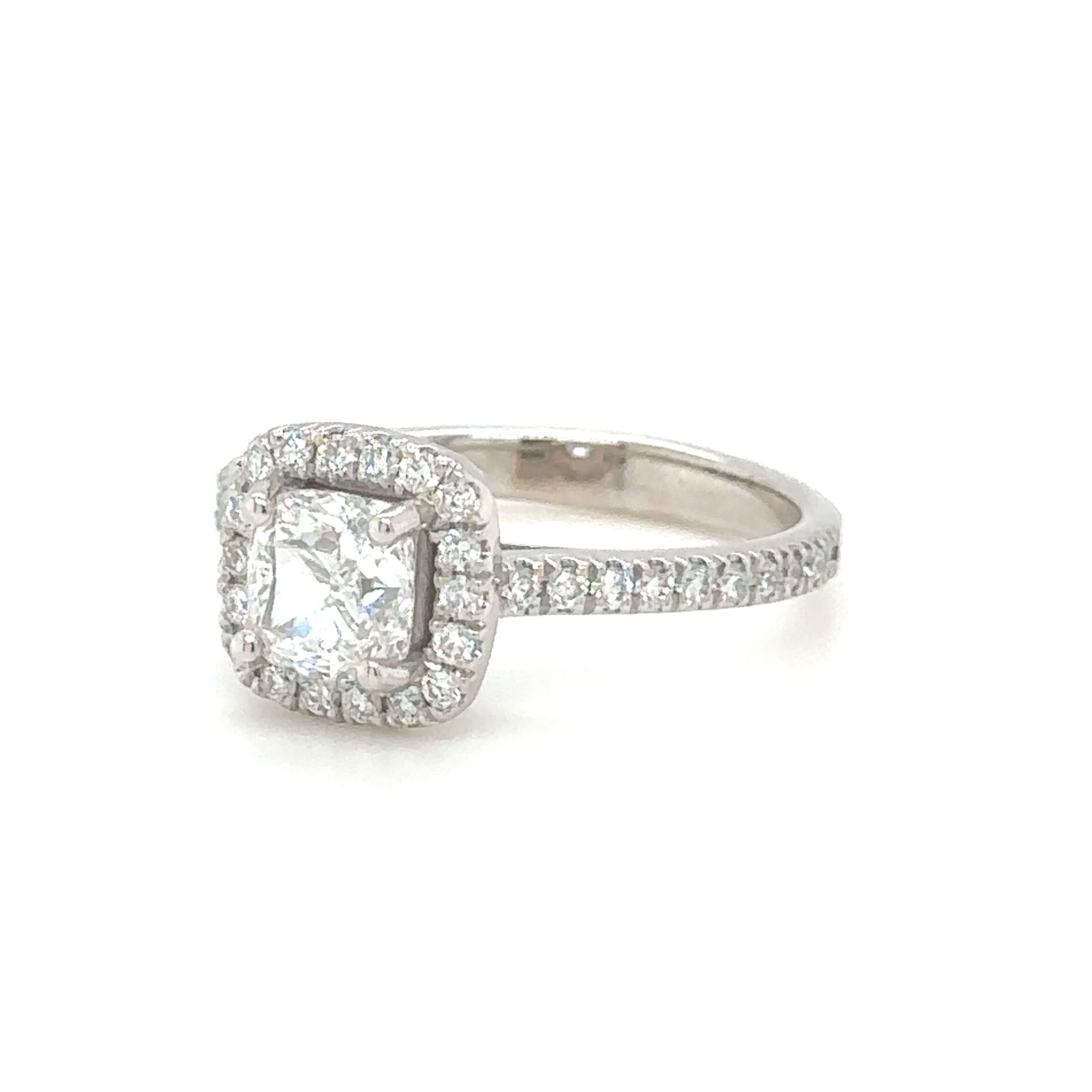 ANELLO IN ORO BIANCO 14K 3.38 GR CON DIAMANTE CENTRALE DA 1.20 CT COLORE G PUREZZA SI1 + BRILLANTI LATERALI PER 0.38CT COLORE D-F PUREZZA VS1-2 - TAGLIA 7 - CERTIFICATO GIA - SFR40301 - COMMISSIONE D’ASTA 25%