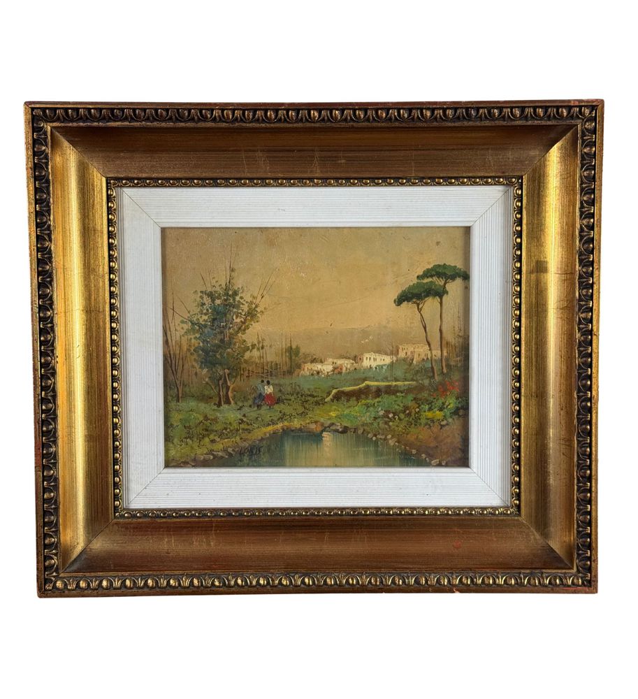 Dipinto olio su tavola, periodo XX secolo scuola Italiana, raffigurante Paesaggio di campagna. Dimensioni compreso cornice: 43x49,5 cm. Dimensioni interno cornice: 24x30 cm. Reca firma in basso a sinistra Loris. Opera in buone condizioni.