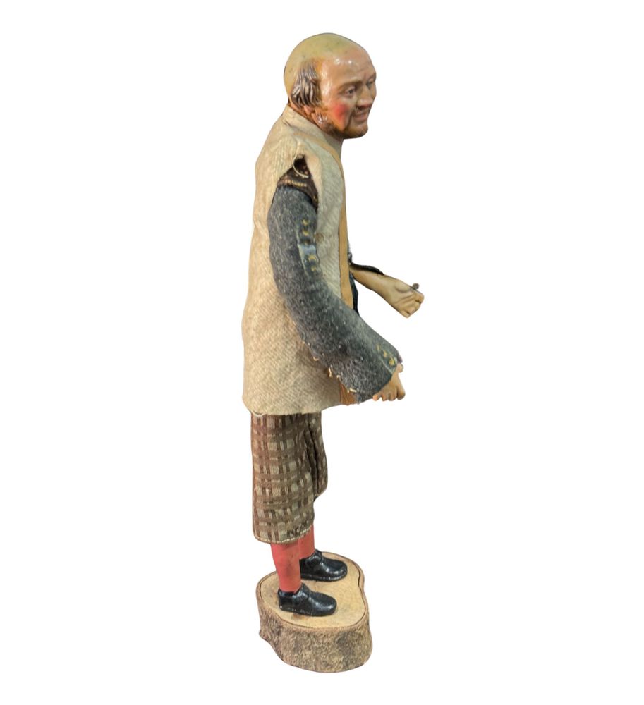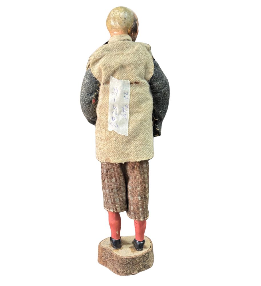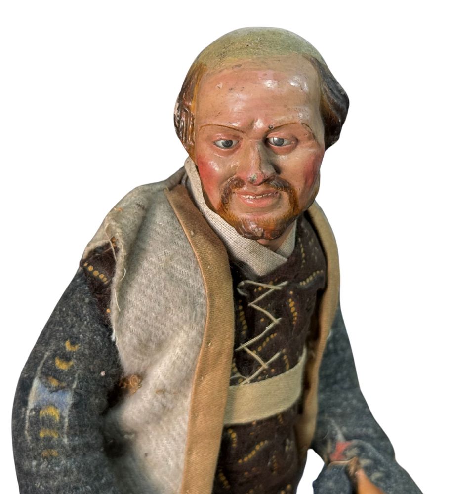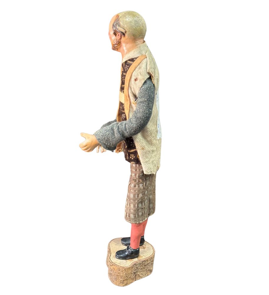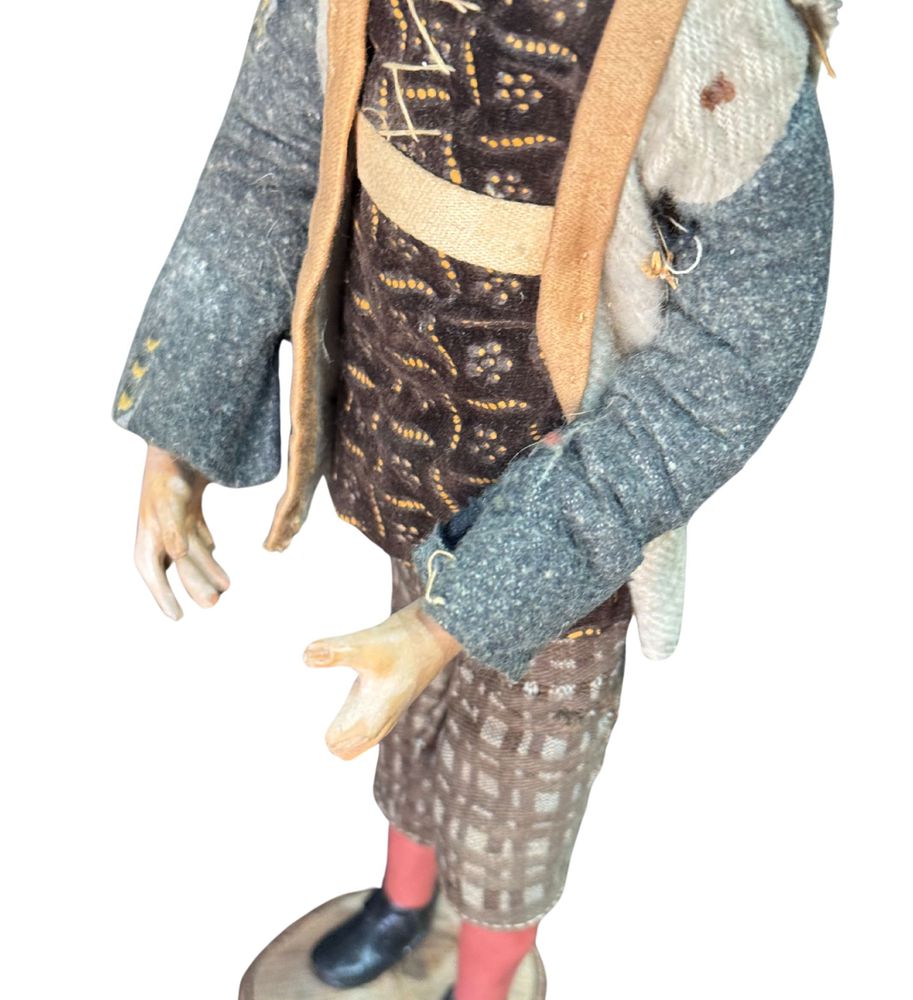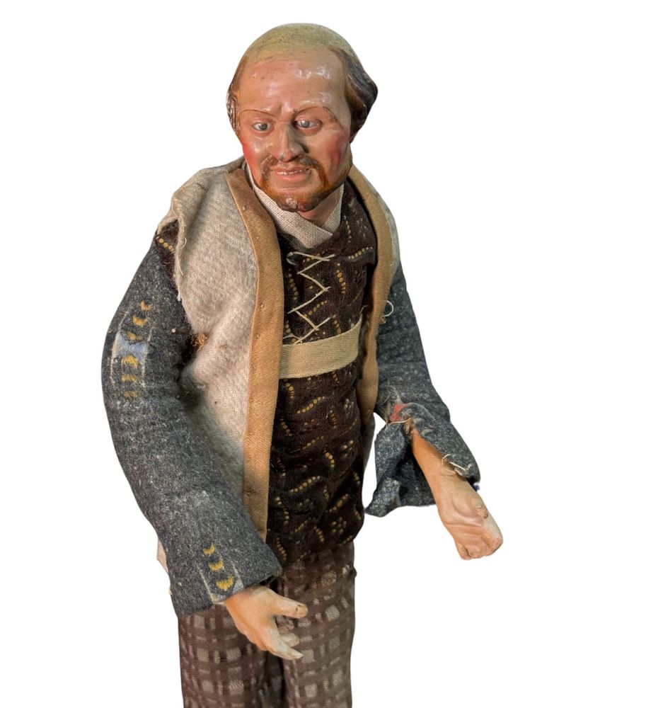 Pastore napoletano, periodo XIX/XX secolo. Dimensioni: h:34 cm. Segno di vissuto difetti e mancanze.