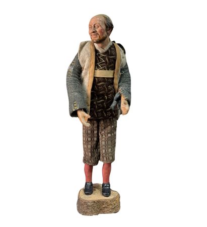 Pastore napoletano, periodo XIX/XX secolo. Dimensioni: h:34 cm. Segno di...