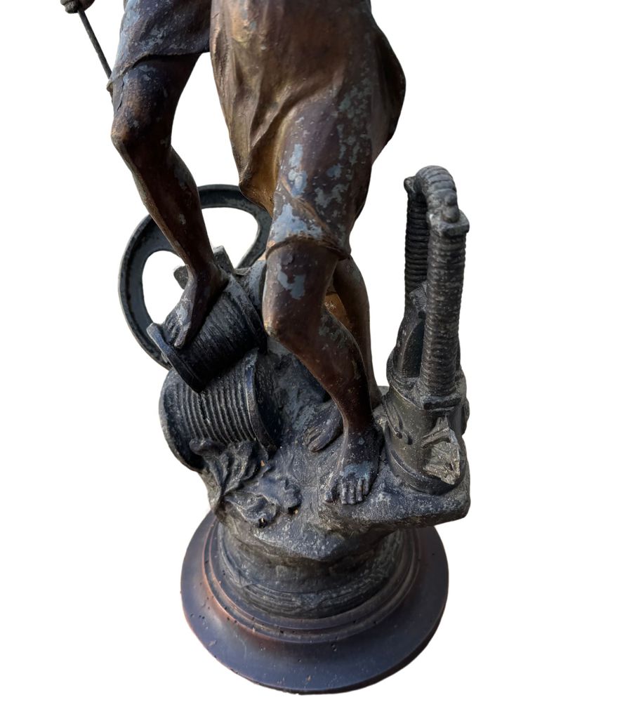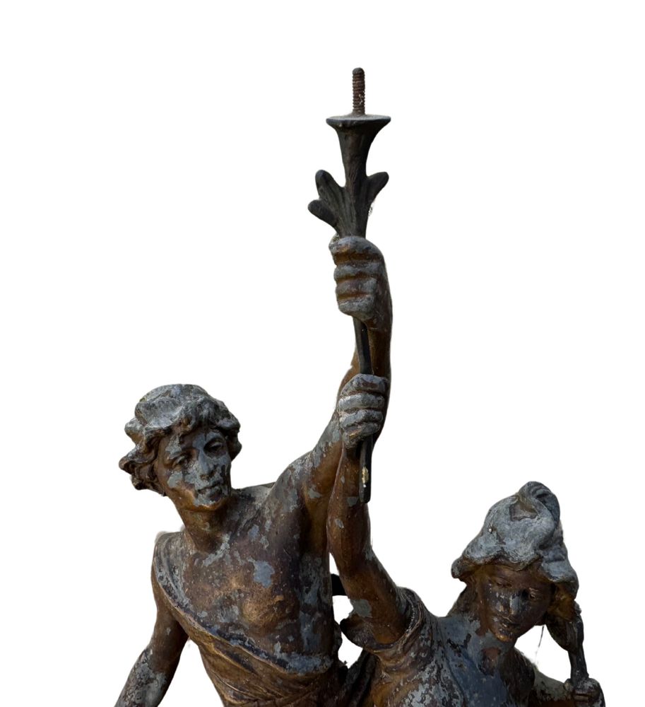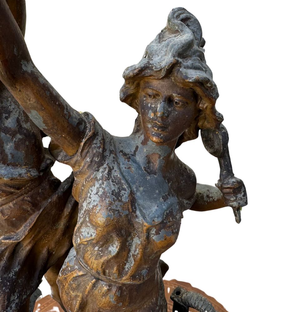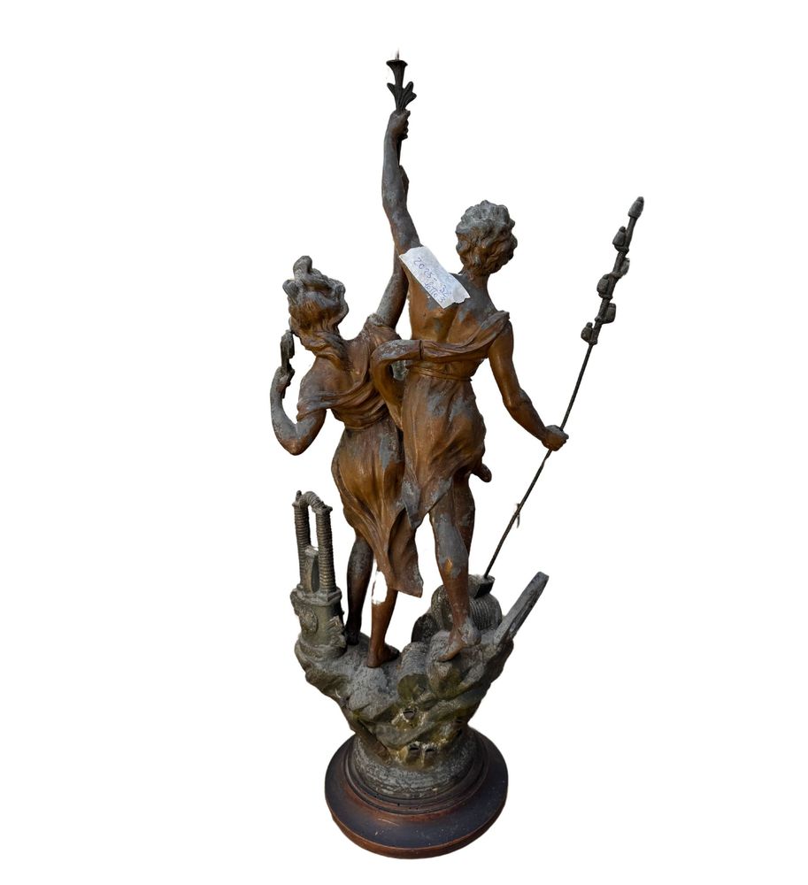 Scultura in metallo di atimonio, periodo XX secolo, raffigurante Il Trionfo. Dimensioni: h72 cm su base in legno. In buone condizioni con lievi segni di vissuto come da foto allegate.