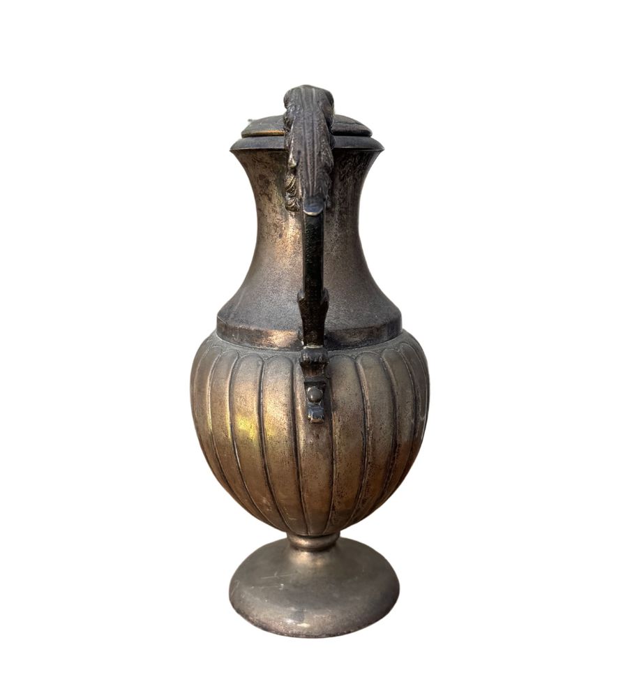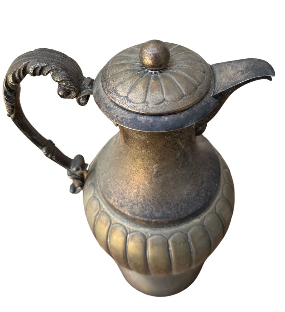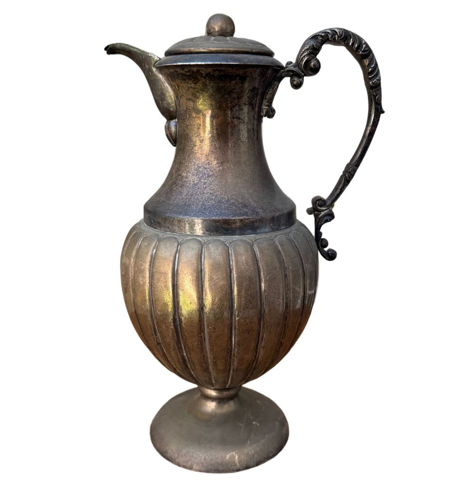 Lattiera in metallo argentato, periodo XIX/XX secolo. Dimensioni: h30 cm d19...