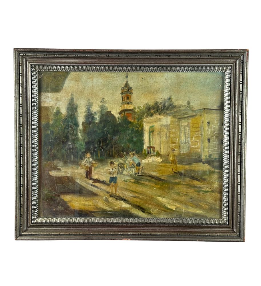 Dipinto olio su cartoncino, periodo XX secolo scuola Italiana, raffigurante Strada con bambini. Dimensioni compreso cornice: 60x50 cm. Dimensioni interno cornice: 49x39 cm. Da artista anonimo. Opera in buone condizioni con lievi segni di vissuto come da foto allegate.