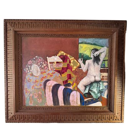 Dipinto olio su tela, periodo XX secolo scuola Italiana, raffigurante Donna in un interno. Dimensioni compreso cornice: 93x110 cm. Dimensioni interno cornice: 62x78 cm. Da artista anonimo. Opera in buone condizioni.