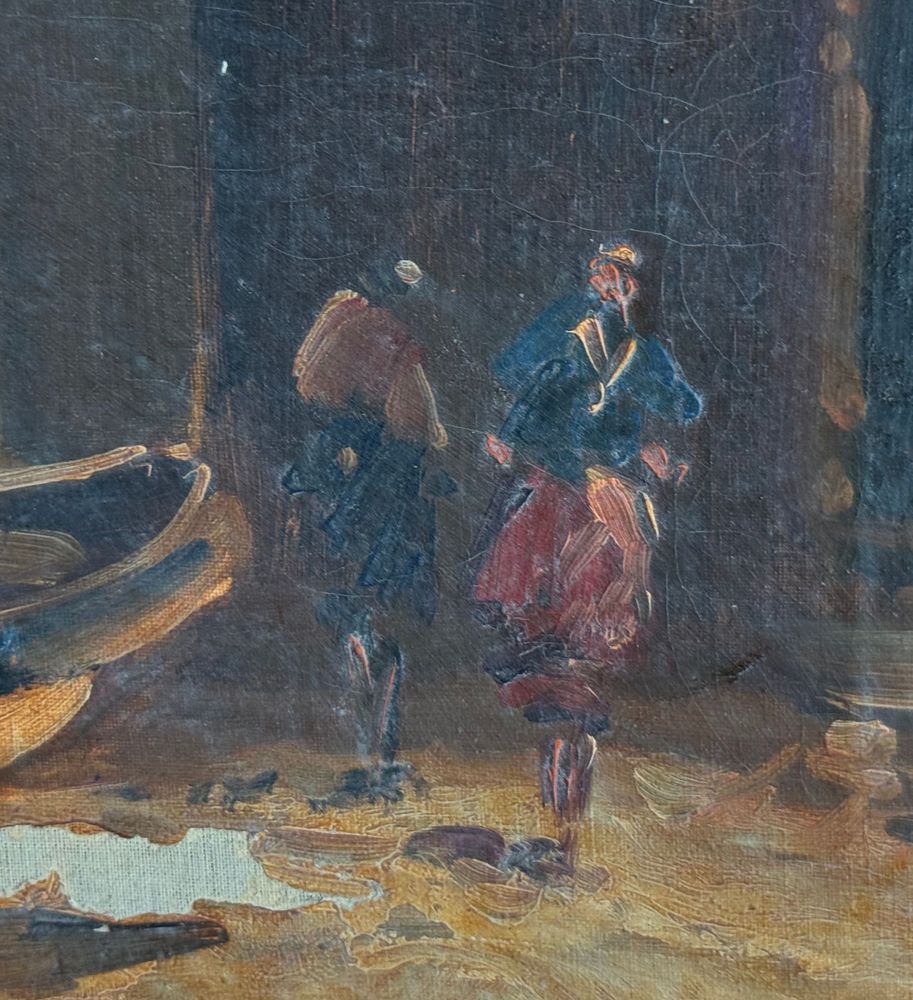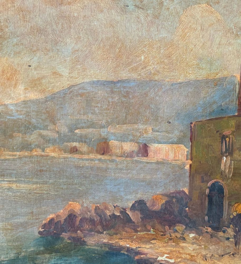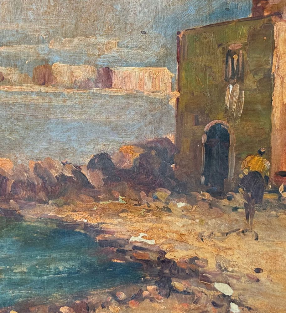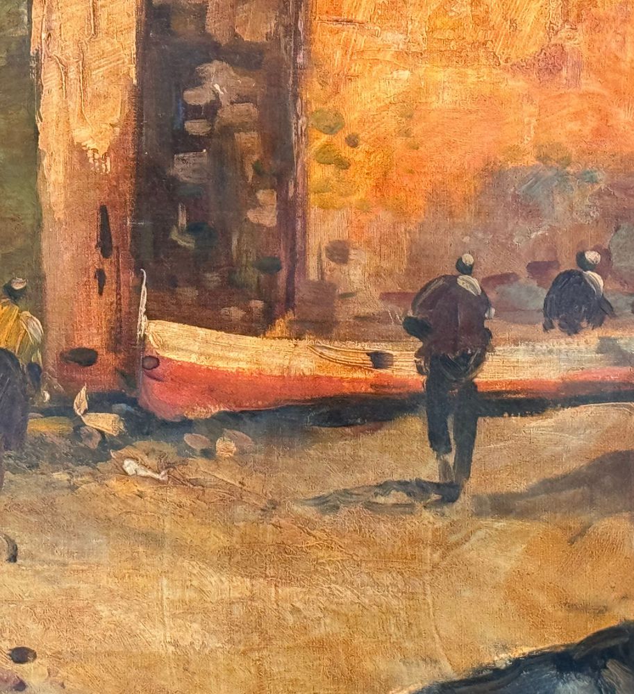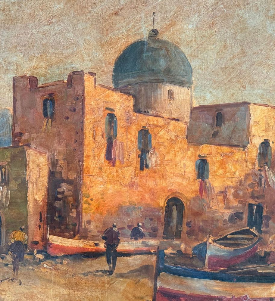 Dipinto olio su tela, periodo XX secolo scuola Italiana, raffigurante Scorcio di marina con barche. Dimensioni compreso cornice: 93x60 cm. Dimensioni interno cornice: 82x50 cm. Reca firma in basso a destra da artista non identificato. Opera in buone condizioni con segni di vissuto come da foto allegate.