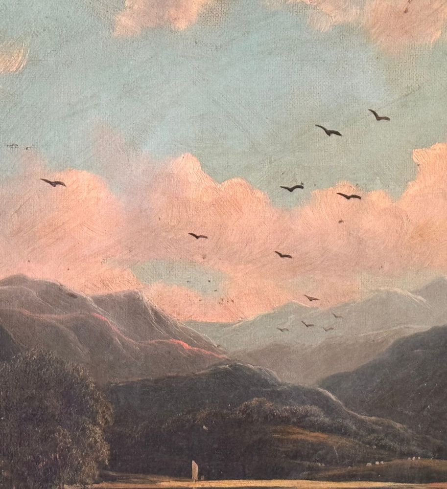 Dipinto olio su tela, periodo XIX/XX secolo scuola Italiana, raffigurante Paesaggio con lago. Dimensioni: 51x61 cm. Reca firma in basso a sinistra da artista non identificato. Opera in discrete condizioni come da foto allegate.