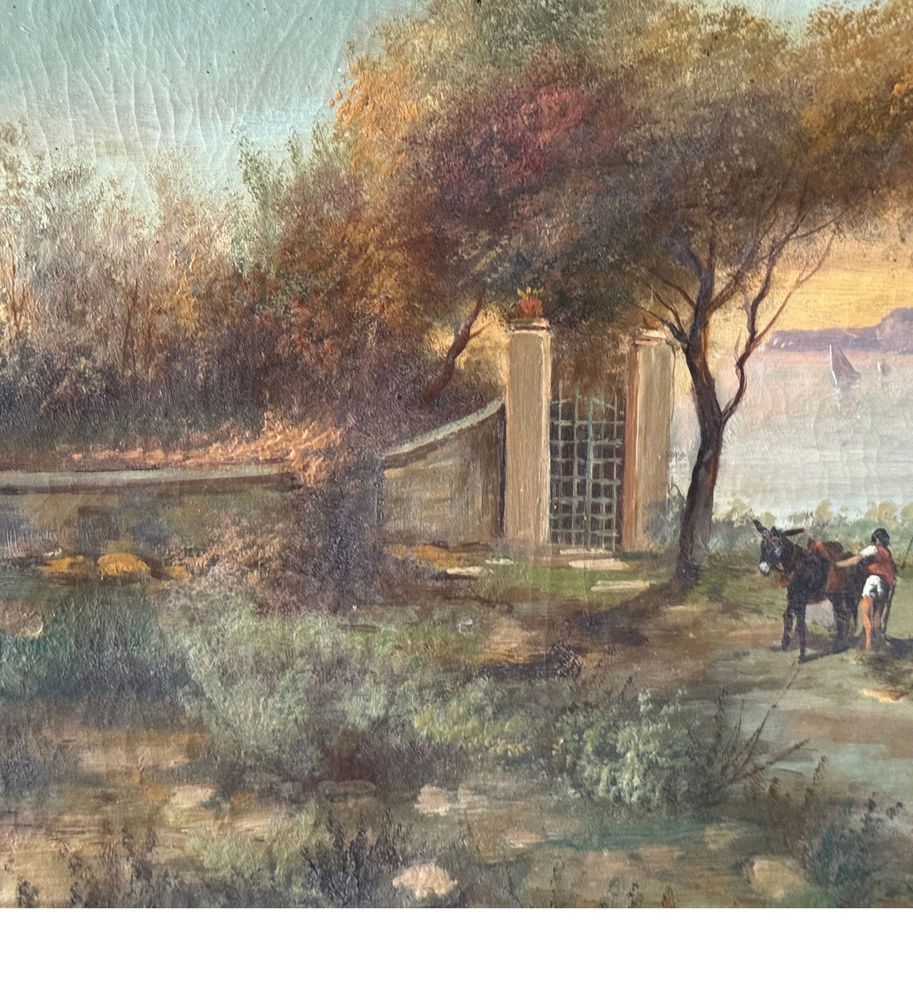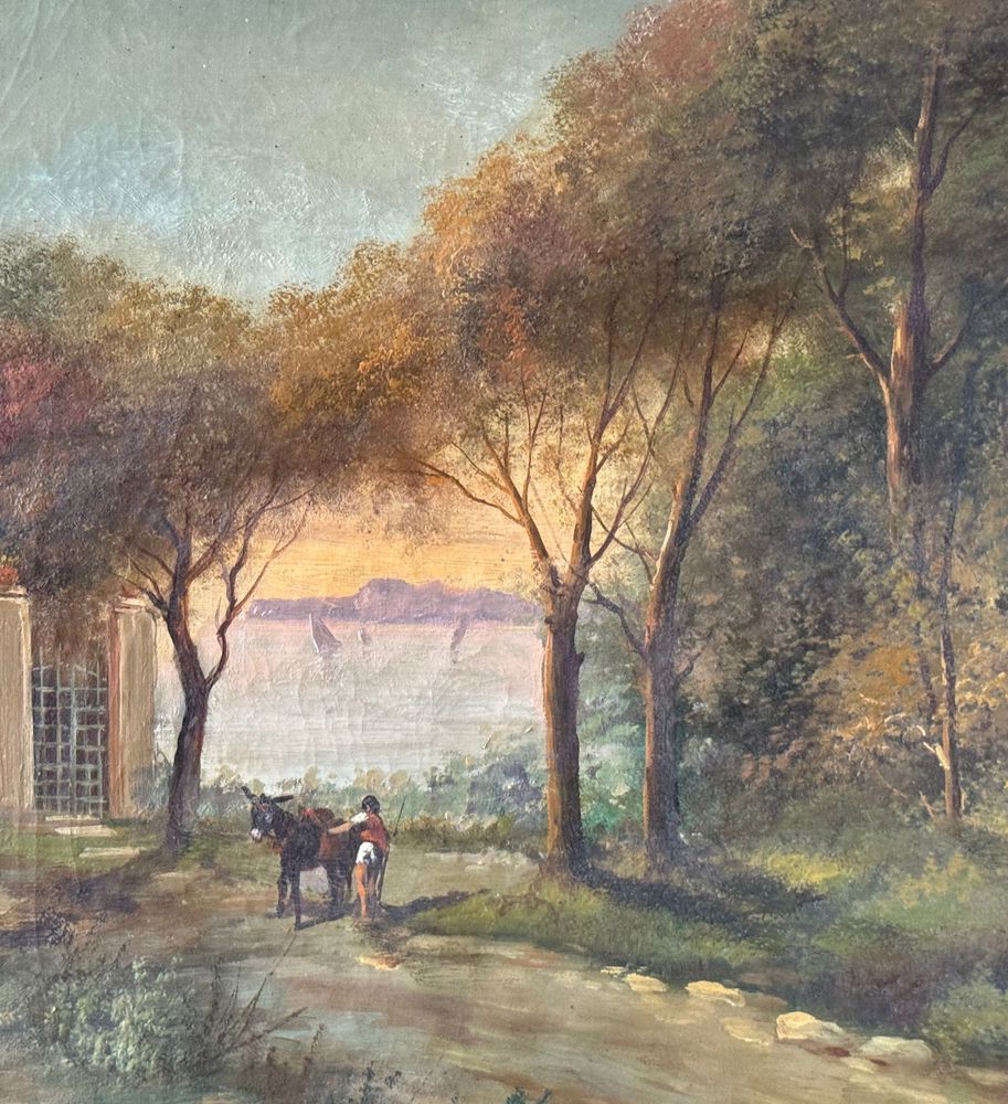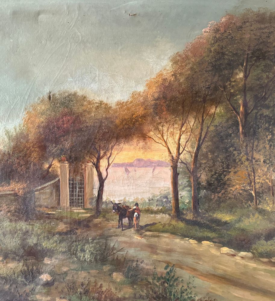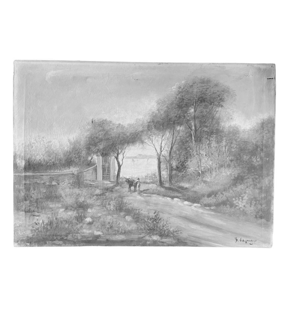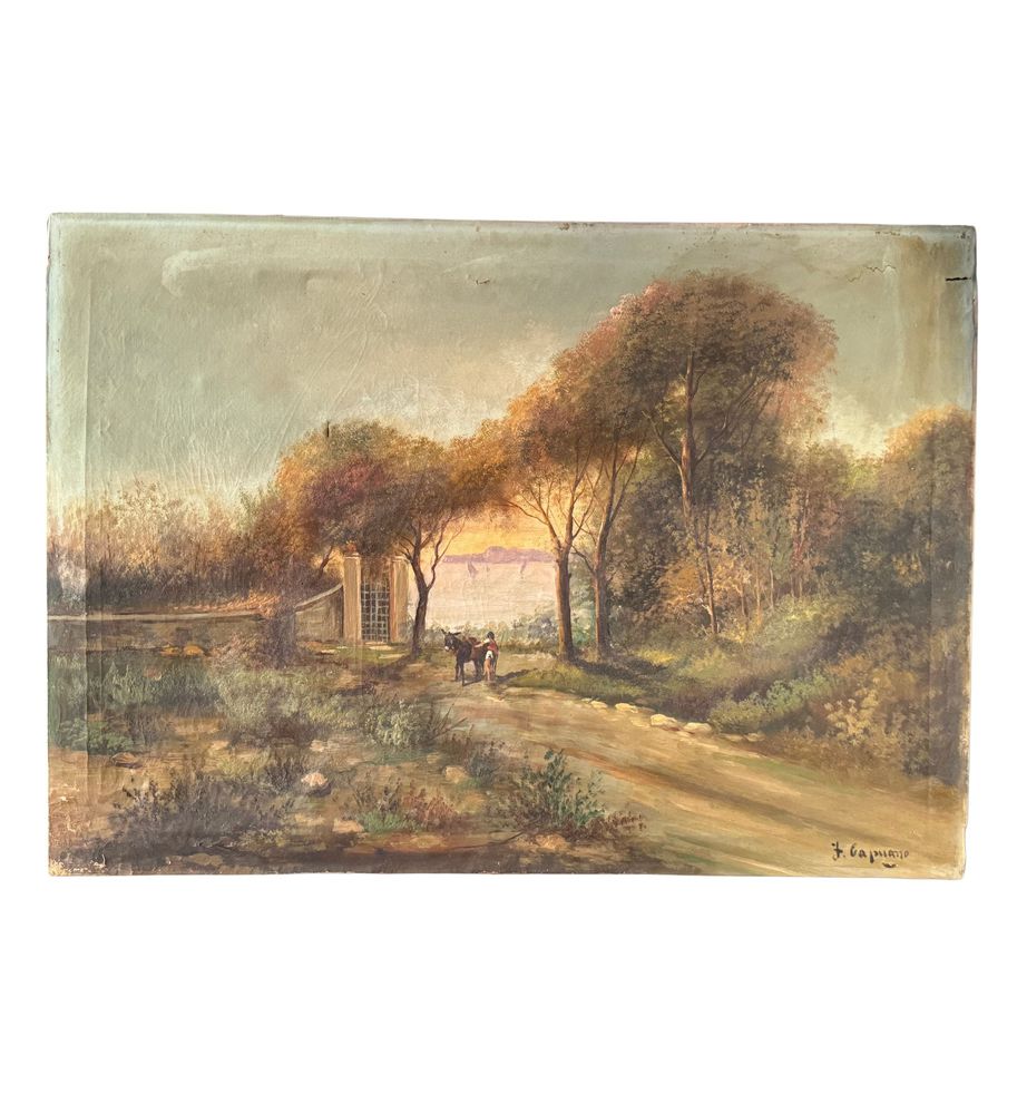 Dipinto olio su tela, periodo XX secolo scuola Italiana, raffigurante Paesaggio. Dimensioni: 70X50 cm. Reca firma in basso a destra da F. Capuano. Opera in discrete condizioni come da foto allegate.