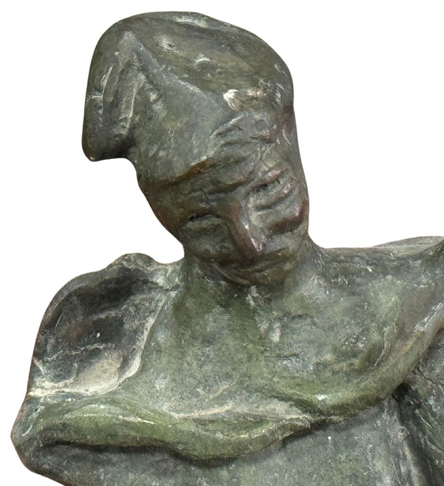 Scultura in bronzo a cera persa, periodo XX secolo, raffigurante Pierrot. Dimensioni: h35x15x15 cm. Scultura in buone condizioni.