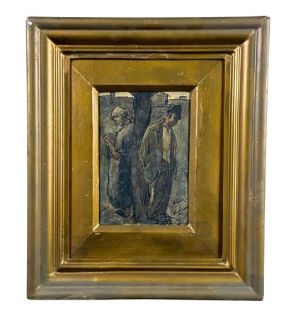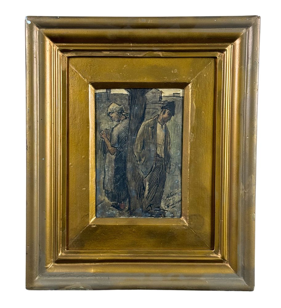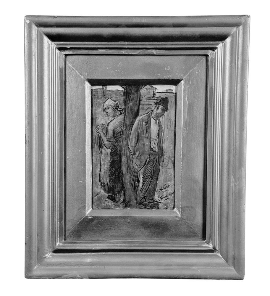 Disegno su cartoncino, periodo XX secolo scuola Italiana, raffigurante Due personaggi. Dimensioni compreso cornice: 33x39 cm. Dimensioni interno cornice: 13,5x19,5 cm. Reca firma in basso a destra da Antonio Asturi. Opera in buone condizioni.