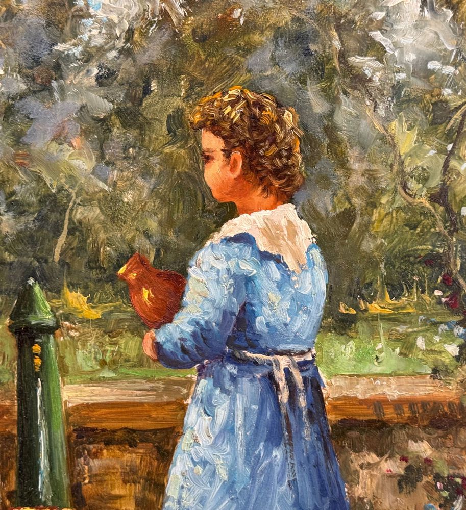 Dipinto olio su tavola, periodo XX secolo scuola Italiana, raffigurante Bambine alla fontana. Dimensioni: 40x30 cm. Da artista anonimo. Opera in buone condizioni.