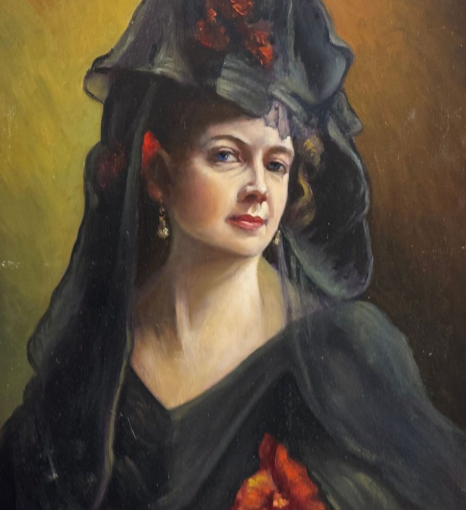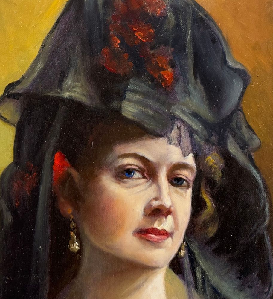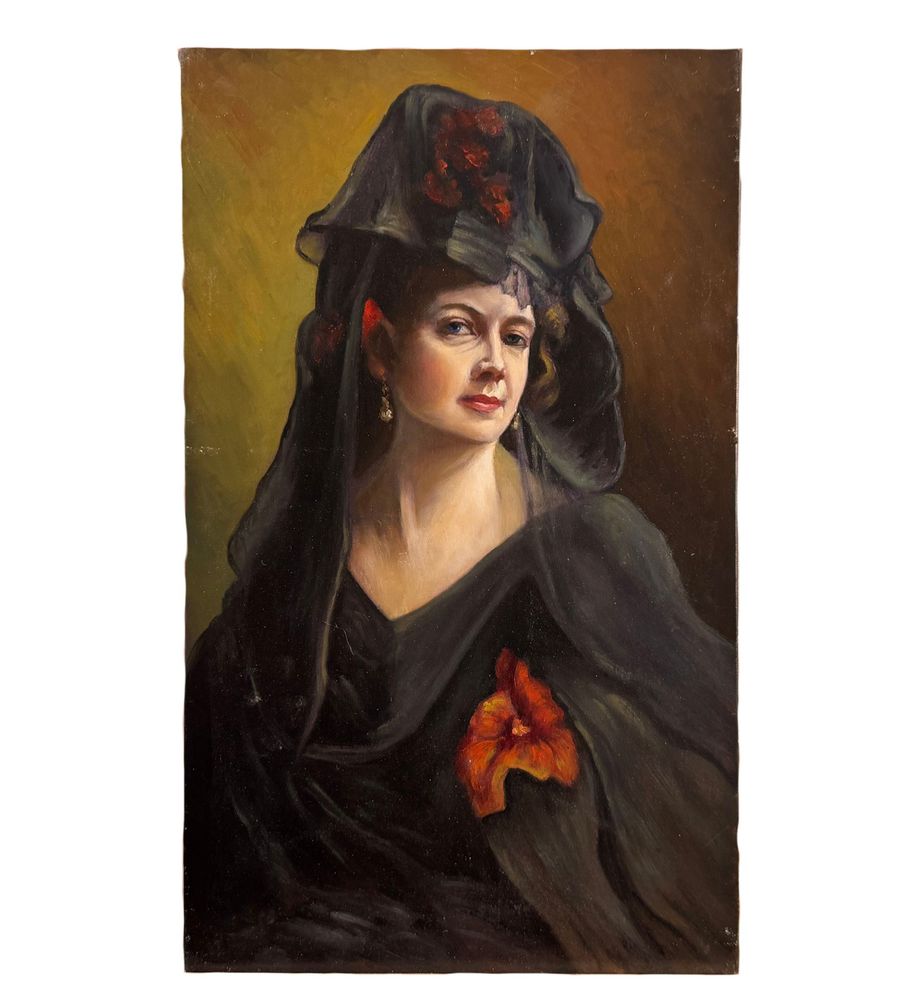 Dipinto olio su cartoncino telato, periodo XX secolo, scuola Europea, raffigurante Ritratto della Regina Vittoria Eugenia di Spagna 1887-1969, 1927. Opera omaggio a Philip de László. Dimensioni: 30x50 cm. Da artista anonimo. Opera in buone condizioni.