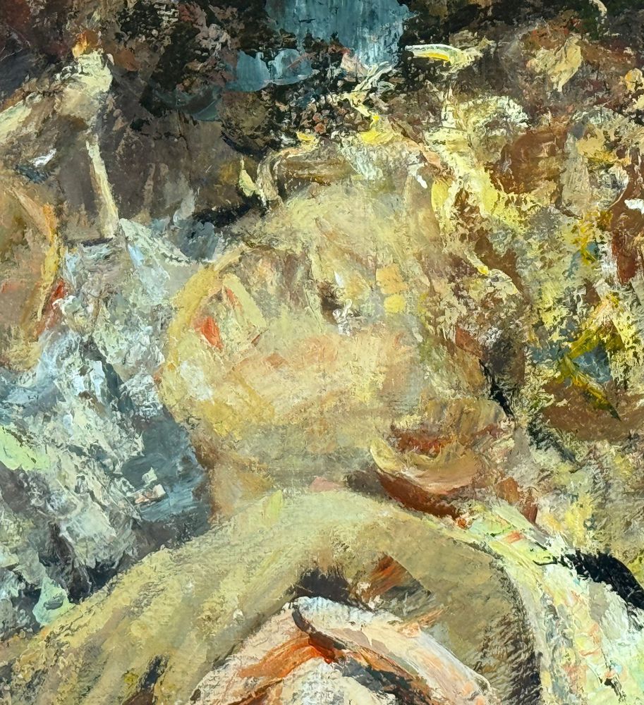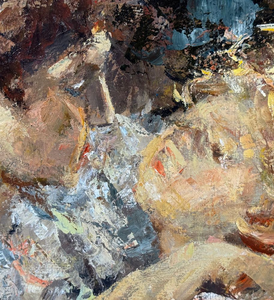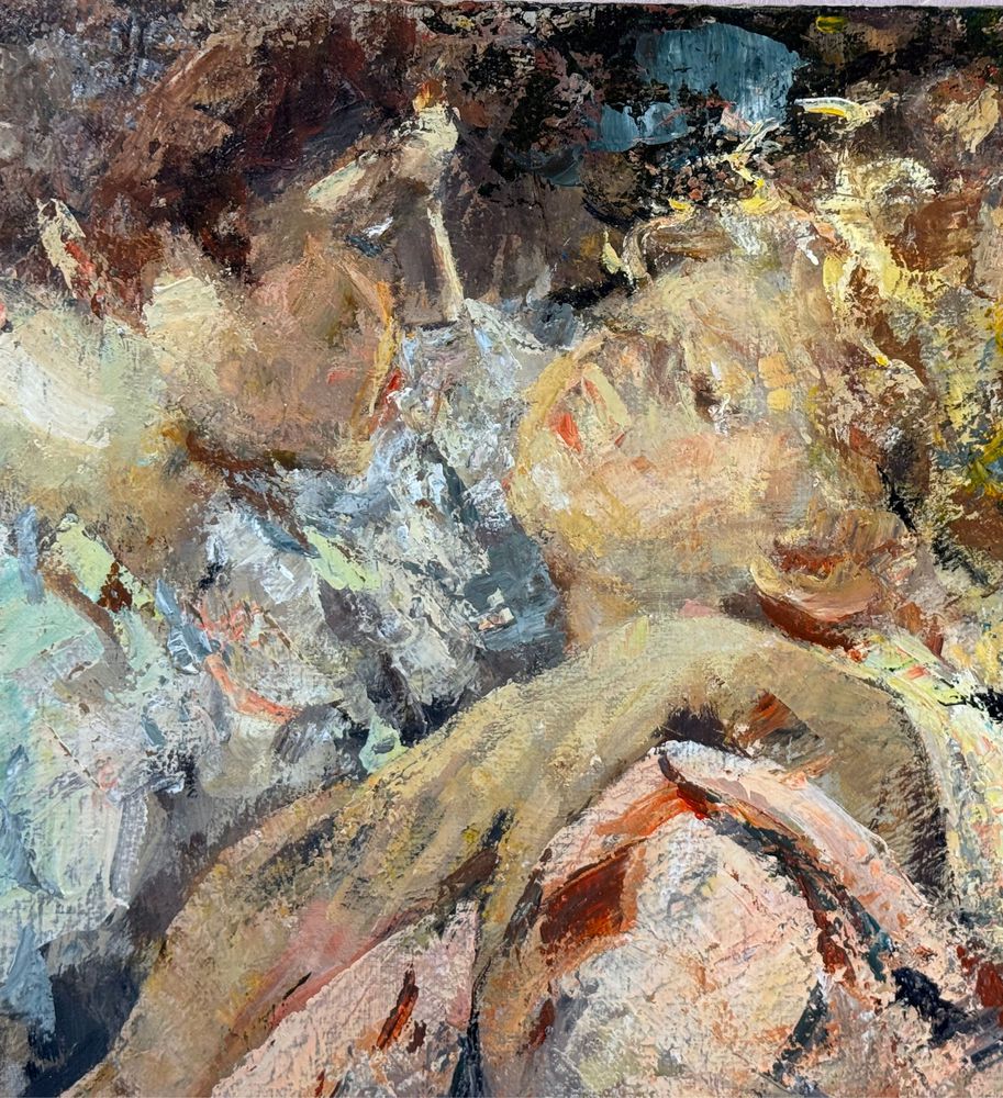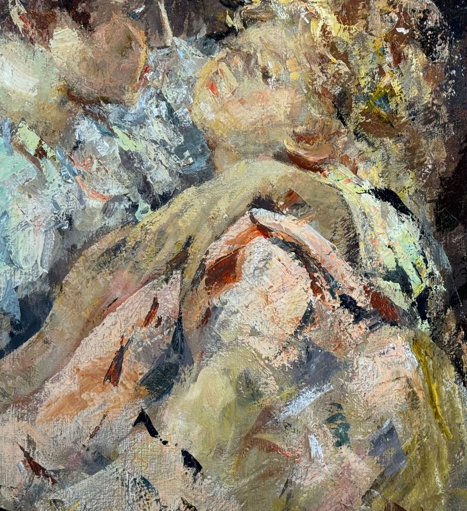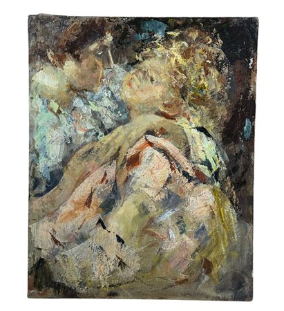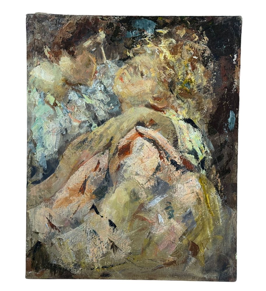 Dipinto olio su tela, periodo XX secolo scuola Italiana, raffigurante "L'abbraccio". Dimensioni: 40x50 cm. Da artista anonimo. Opera in buone condizioni.