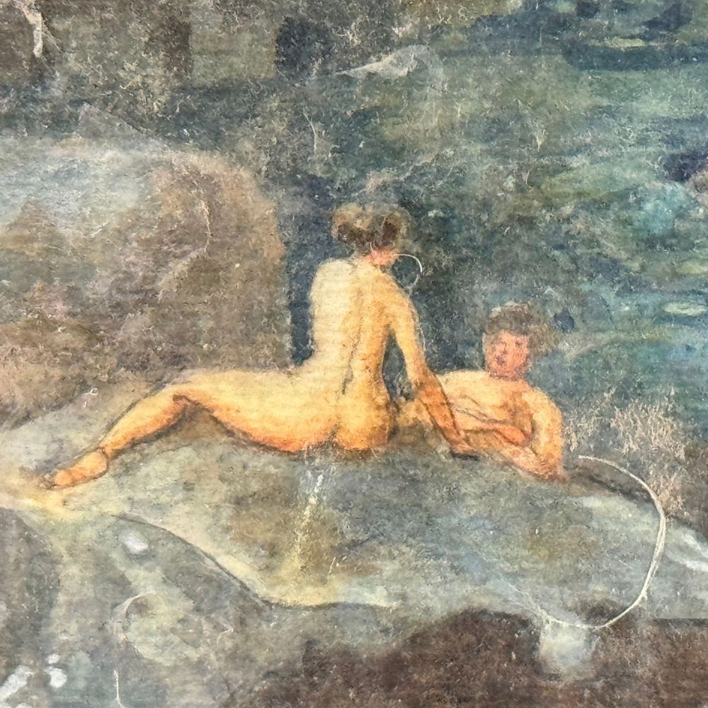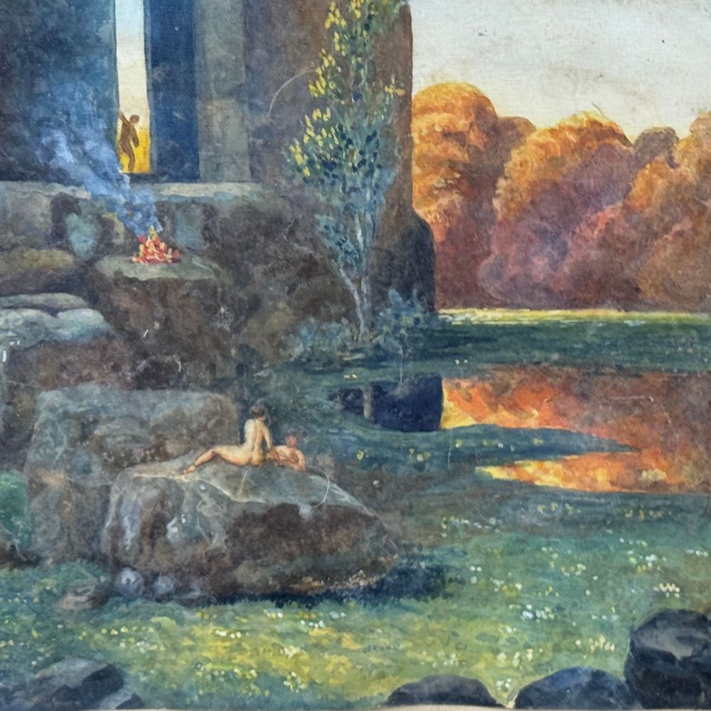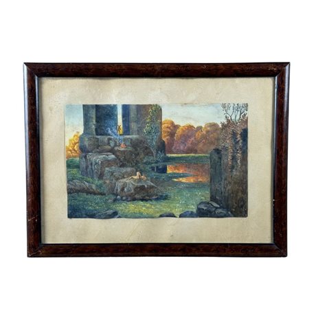 Dipinto acquerello su carta, periodo XIX/XX secolo scuola italiana, raffigurante Capriccio architettonico con personaggi (Pozzuoli). Dimensioni interno cornice: 27x17 cm. Dimensioni compreso cornice: 39x29 cm. Da artista anonimo. Opera in buone condizioni con lievi segni di vissuto come da foto allegate.