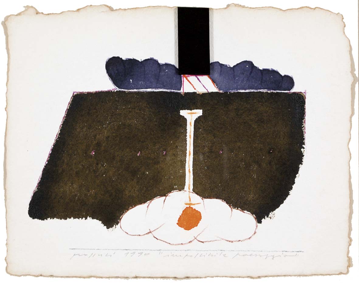 POZZATI CONCETTO Vo Vecchio 1935 Impossibile paesaggio 1990 tempera e collage su carta a mano 26x33 cm firma data e titolo in basso provenienza Galleria d'Arte Contemporanea Padova - etichetta al retro