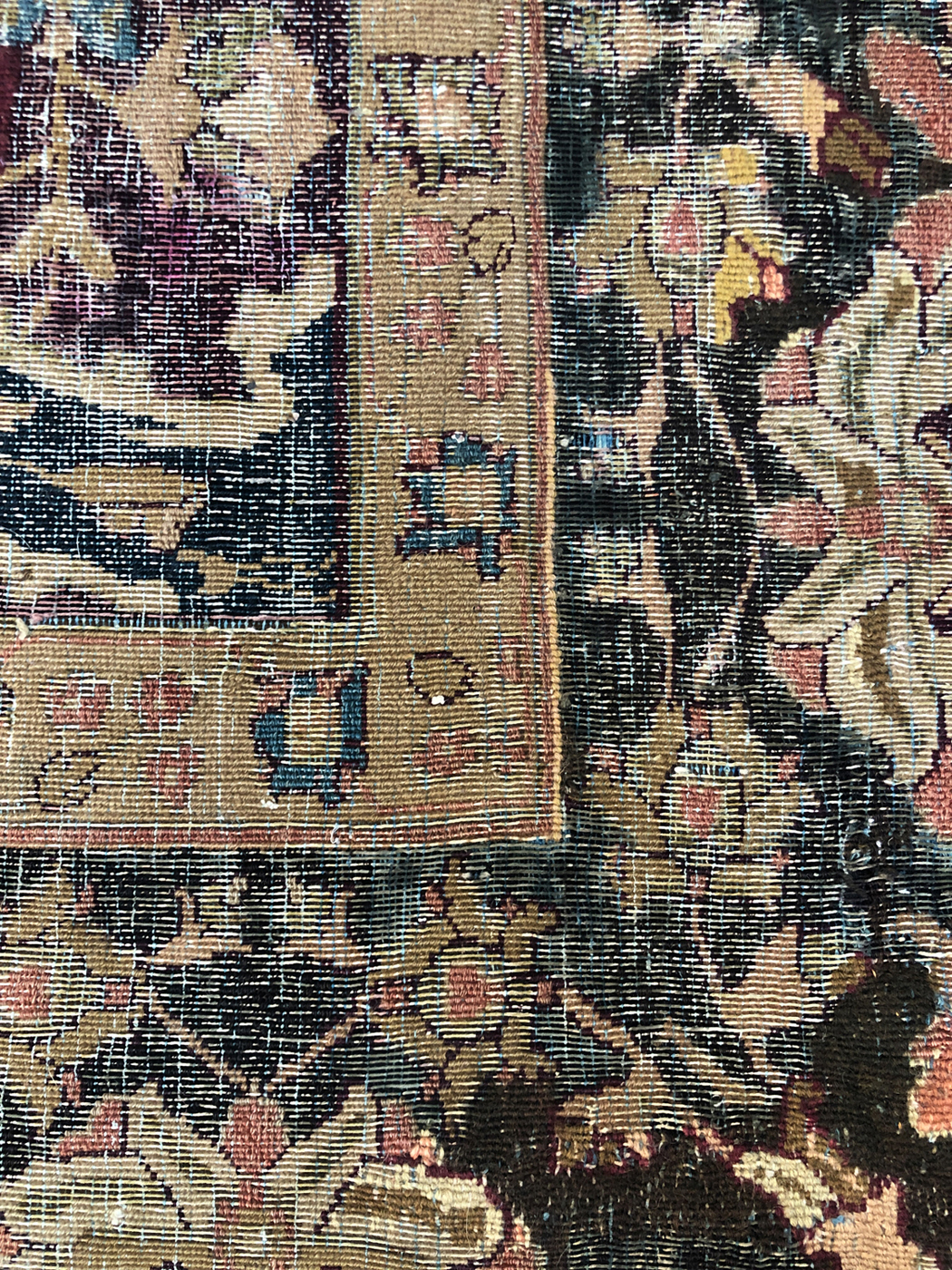 Stato di conservazione. Superficie: 50% (usura, ampie ritessiture del vello)
