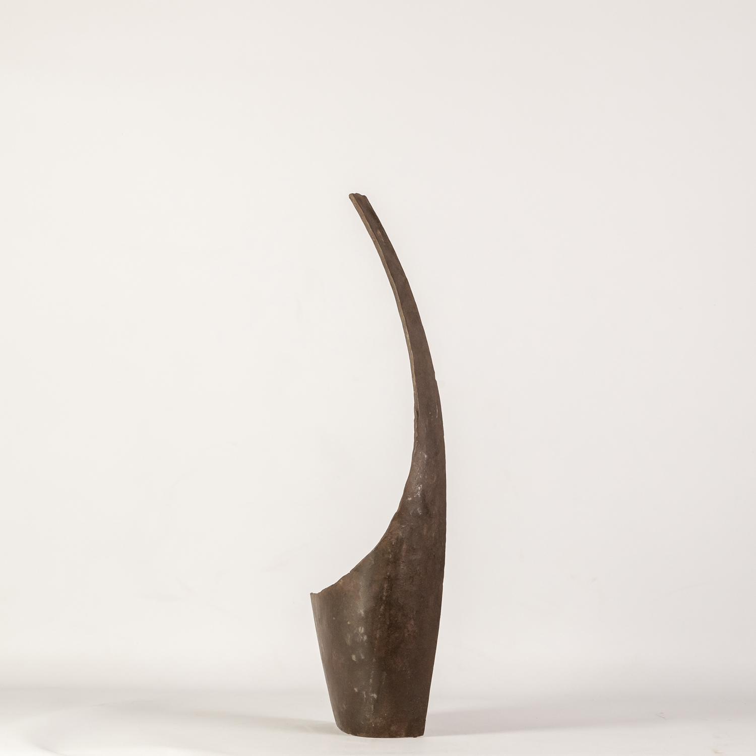 L'opera, ricavata da una unica lastra battuta e sagomata in forgia, è stata interpretata come la forma essenziale di una giraffa. In realtà, si tratta di un pretesto per creare un movimento di torsione. La curva amplifica la verticalità e guida l’occhio dell’osservatore verso l'alto. Giustifica formalmente, inoltre, la base larga e stabilizzante. La forma avvolgente gradua ,infine, magistralmente il rapporto tra luce e ombra.
