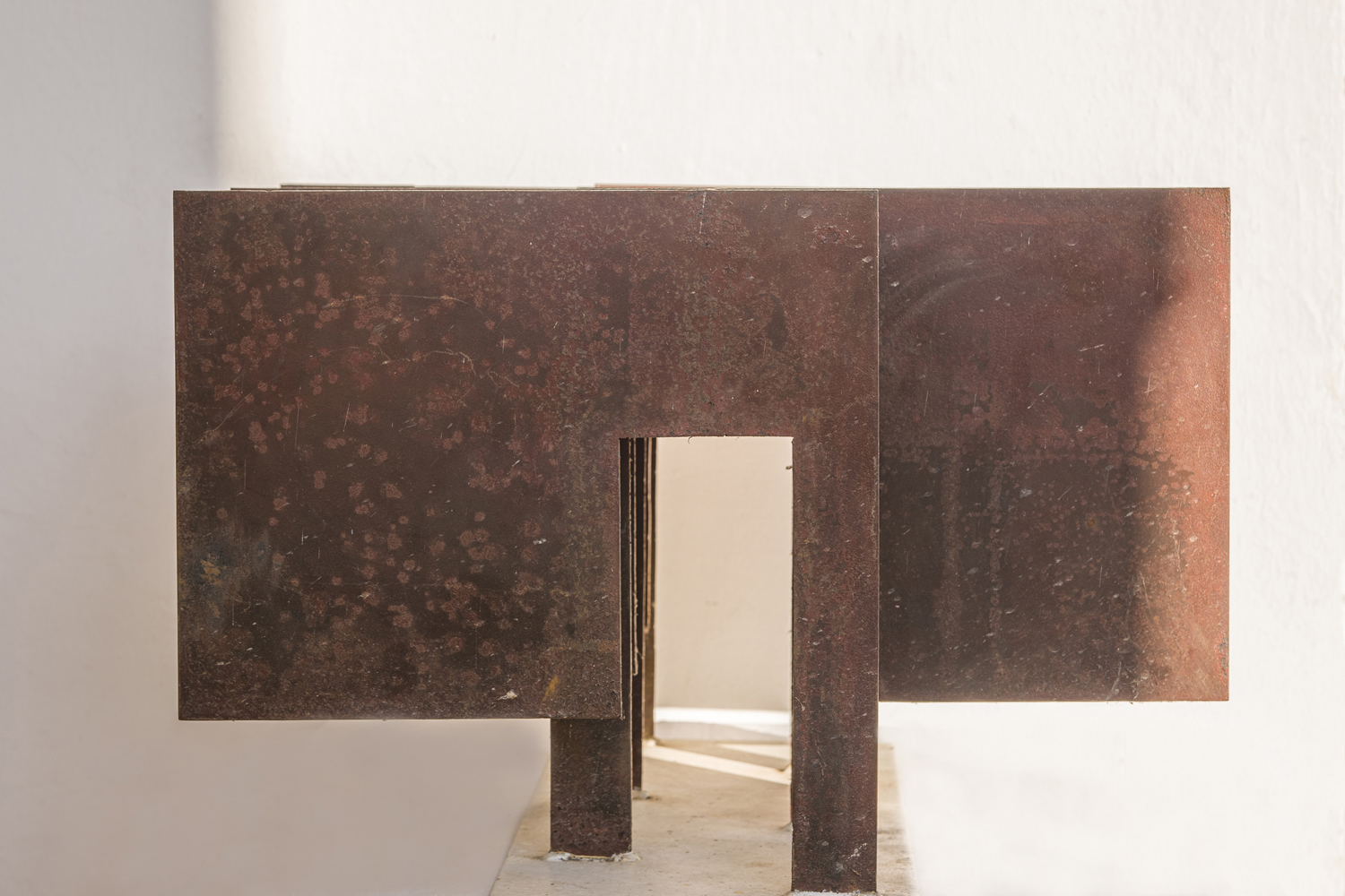 Nonostante sia registrata, presso l'archivio Benetton, come "Scultura vivibile n. 8", l’opera in esame è la seconda della serie dedicata alle sculture-strutture attraversabili da parte degli osservatori. Mai realizzata in forma monumentale, interroga lo spazio come elemento fisico e simbolico attraverso la successione del modulo porta-parete. Un espediente compositivo notevole sono le lastre divisorie sospese, che danno al visitatore l'impressione di trovarsi in uno spazio aperto, suggerendo al contempo la potenziale leggerezza del ferro: le pareti non diventavano impedimenti ma protezioni.