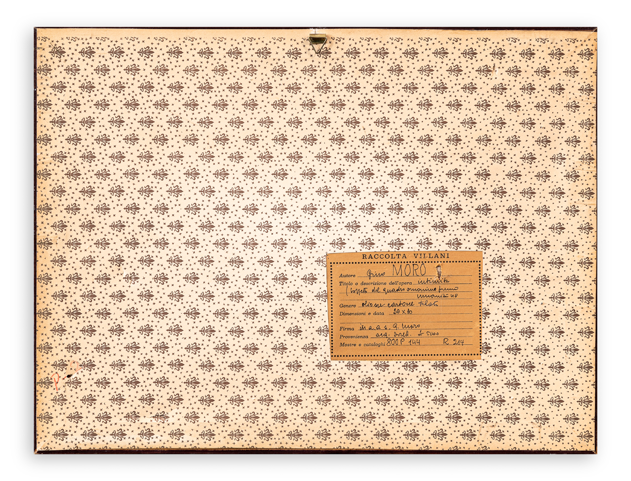 Etichetta della Raccolta Villani, recante caratteristiche tecniche dell'opera, al retro del cartone protettivo
