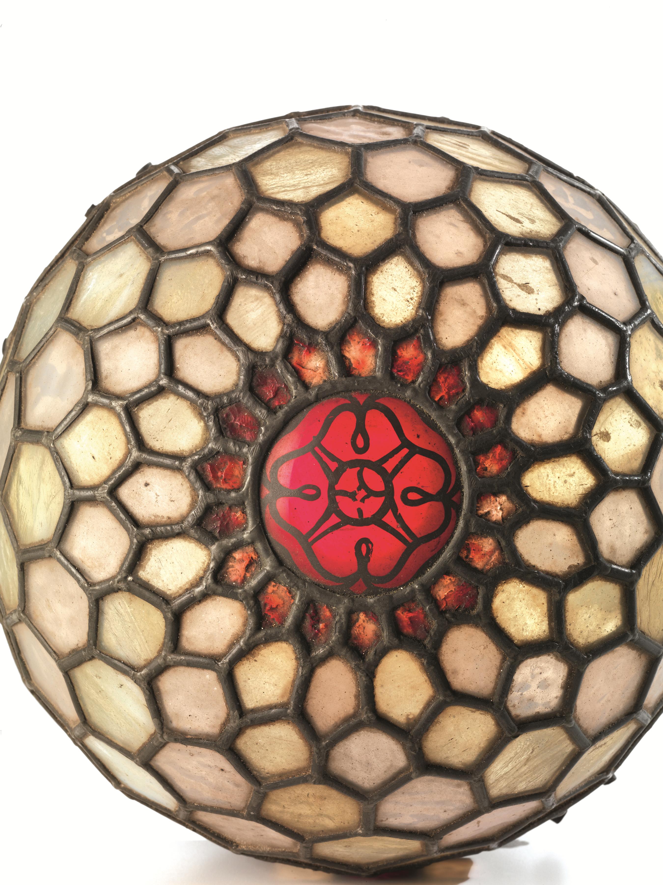 maiolica a lustro metallico, ferro battuto e vetro, alt. cm 48