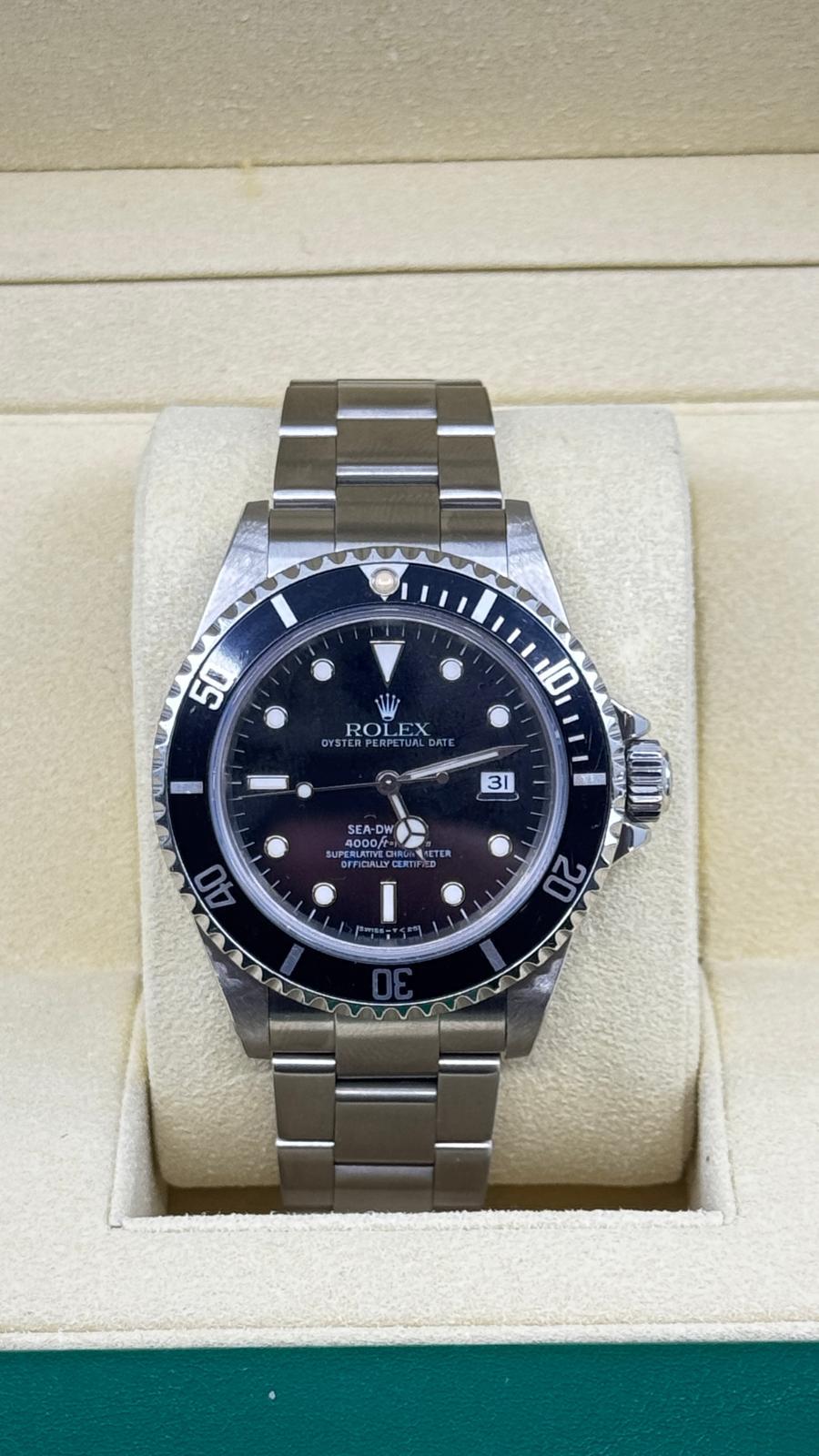 Marca Rolex Modello (Orologio) Sea-Dweller Numero di referenza 16600 Carica Automatico Materiale della cassa Acciaio Materiale cinturino Acciaio Anni di produzione 90 Condizione Ottimo (di seconda mano, segni di usura assenti o appena visibili) Corredo No documenti originali Rolex, no box Garanzia di un anno del negozio Cassa Materiale della cassa Acciaio Diametro 40 mm Impermeabile Oltre i 120 ATM Materiale lunetta Acciaio Vetro Vetro zaffiro Quadrante Nero Numeri sul quadrante Senza numeri Cinturino Materiale cinturino Acciaio Colore cinturino Acciaio Chiusura Déployante Materiale chiusura Acciaio Funzioni Data