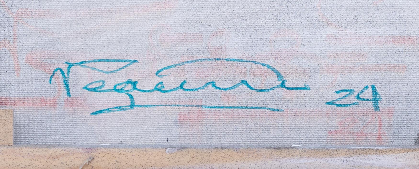 - Francesco Pegurri, artista italiano, nasce nel 1997 a Lovere, un borgo in provincia di Bergamo,Appassionato al disegno, si diploma presso il Liceo Artistico Decio Celeri di Lovere, dove comincia il suo interesse per la calligrafia e le arti visive.Approda nel mondo del tatuaggio e inizia un periodo di ricerca e di studio della materia calligrafica, soffermandosi sulla struttura dei caratteri e delle svariate forme.II momento più caratterizzante del suo percorso è il passaggio da pelle a tela.Attraverso la pittura, Francesco sviluppa le sue capacità contribuendo così alla formazione del proprio stile artistico.!!!La ricerca artistica di Francesco Pegurri si sviluppa attraverso un'indagine approfondita sulla realtà, trasformando il gesto calligratico in scenari architettonici e paesaggi naturali.La sua tecnica unisce abilità, disciplina e immaginazione, dando vita a opere che fondono la precisione della scrittura con la fluidità delle forme visive.Uno degli elementi distintivi del suo lavoro è il rapporto complesso con il colore. Se inizialmente la sua espressione artistica sembrava evitare l'uso cromatico, nel suoi lavori più recenti il colore assume un ruolo centrale, interagendo con forme geometriche, luci e ombre per consolidare il suo stile unico. Questa evoluzione permette alle sue opere di acquisire una nuova profondità, dove il contrasto tra tonalità e strutture visive diventa parte integrante della narrazione artistica.Il suo stile personale richiama paesaggi naturali e ambientazioni di staticità scenografica, creando un equilibrio tra movimento e immobilità. I pattern calligrafici che caratterizzano le sue opere variano in direzione, spessore e protondita, adattandosi ai soggetti rappresentati e generando volumi, forme contrastanti e giochi di luce e ombra. Questo approccio conterisce alle sue creazioni un taglio contemporaneo e avanguardistico, in cui la tradizione della calligrafia si fonde con una visione moderna dell'arte.Il suo impegno nello studio della calligratia lo ha portato a collaborare con keaps, uno del più noti artisti calligrafici a livello internazionale. Grazie a questa esperienza, Pegurri ha affinato ulteriormente la sua tecnica, esplorando nuove possibilita espressive. Attualmente continua a collaborare con diversi artisti, partecipando a mostre collettive e contribuendo alla diffusione della calligrafia come forma d'arte contemporanea.