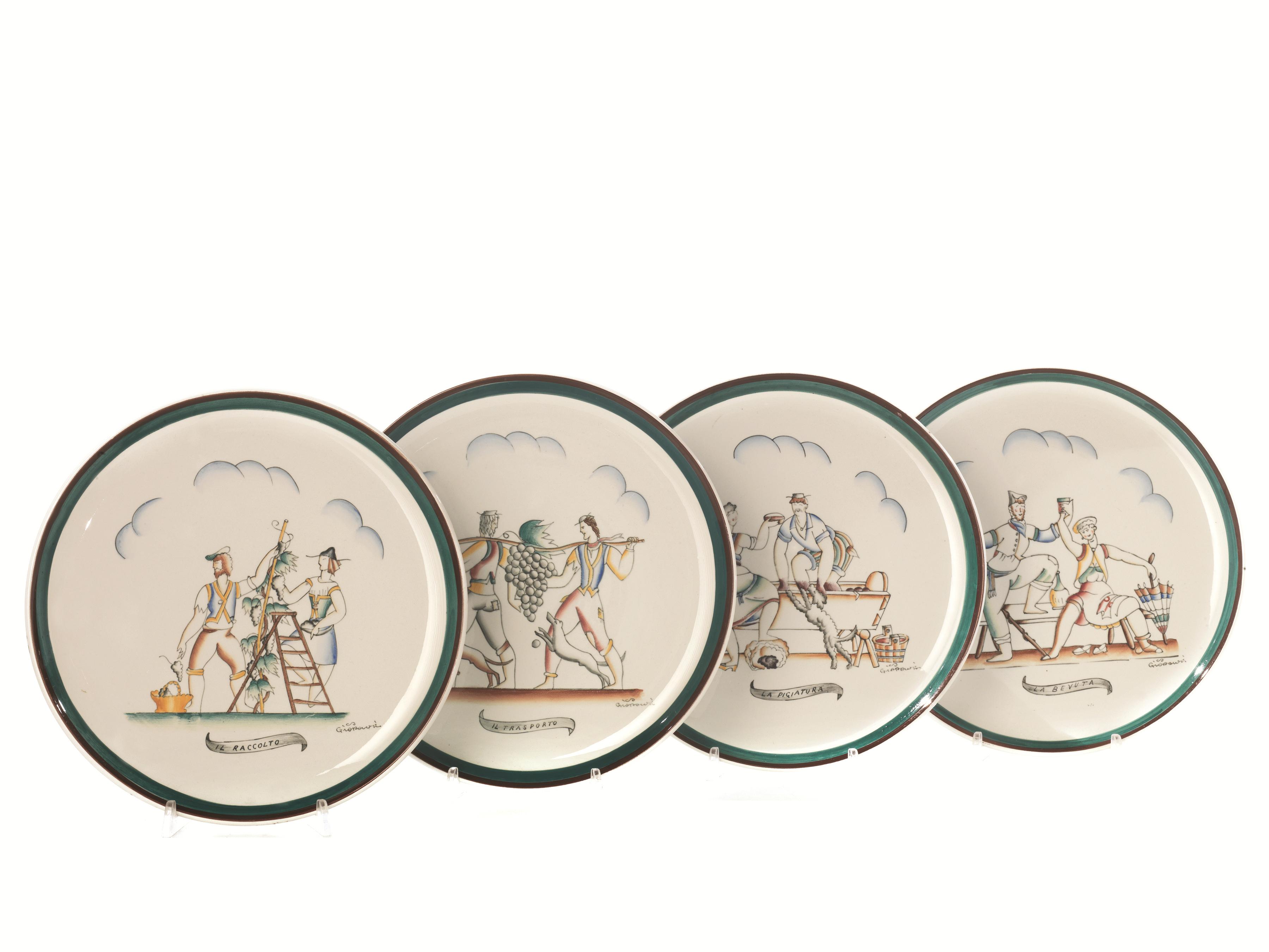 Gio Ponti(Milano 1891-1979) Quattro piatti "VENDEMMIA", 1927...