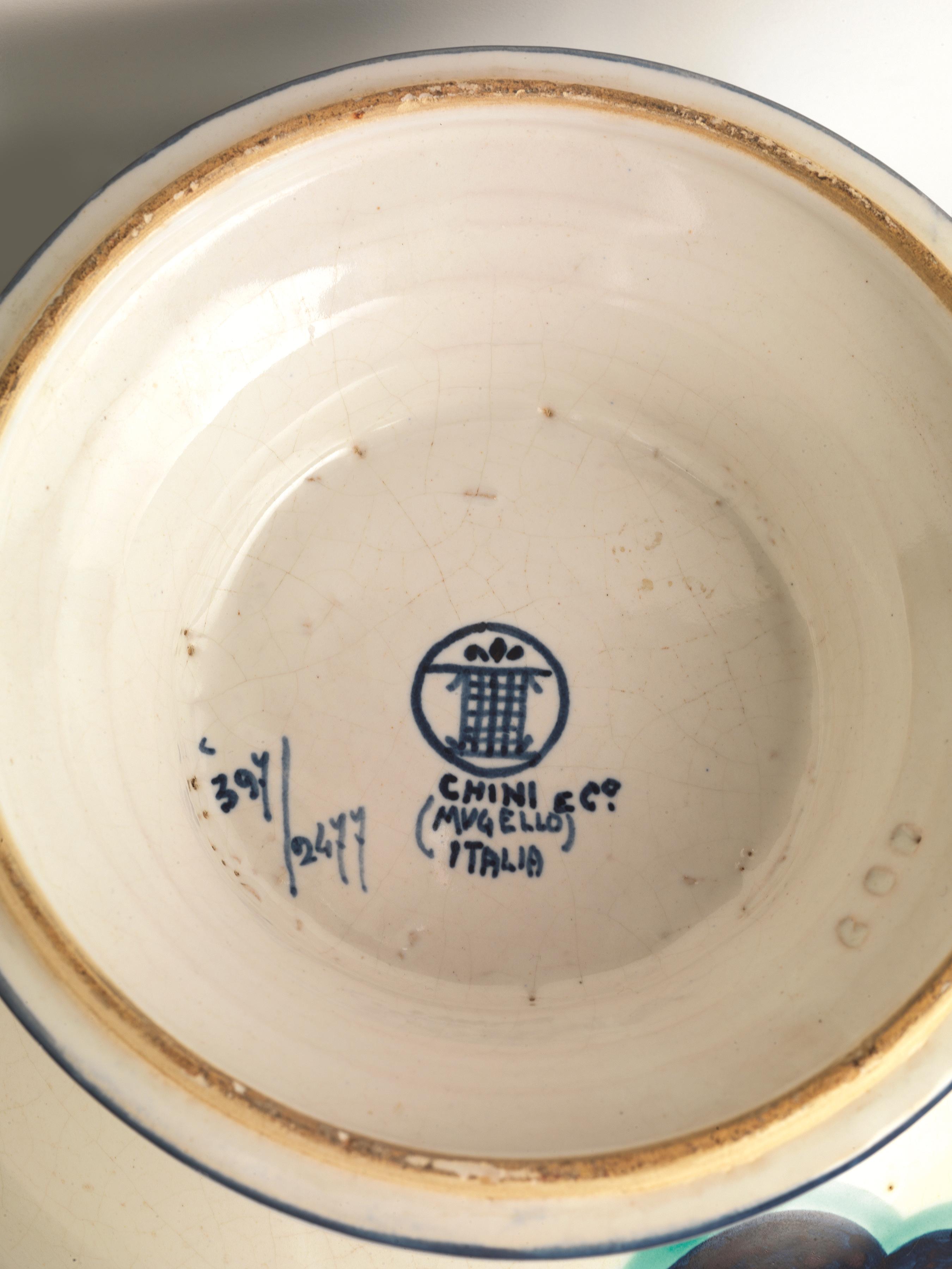 maiolica fondo bianco con decoro nei toni del verde, blu e turchese, Reca sul fondo il marchio graticola CHINI&Co. (Mugello) ITALIA 397/2477, alt. cm 32